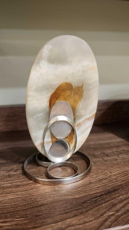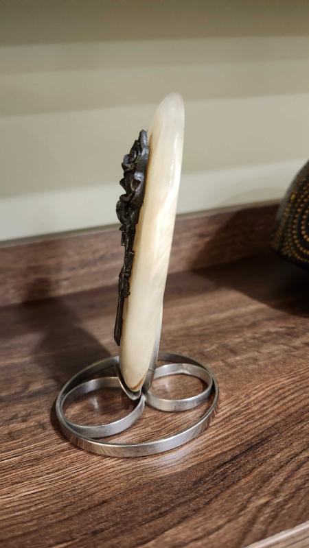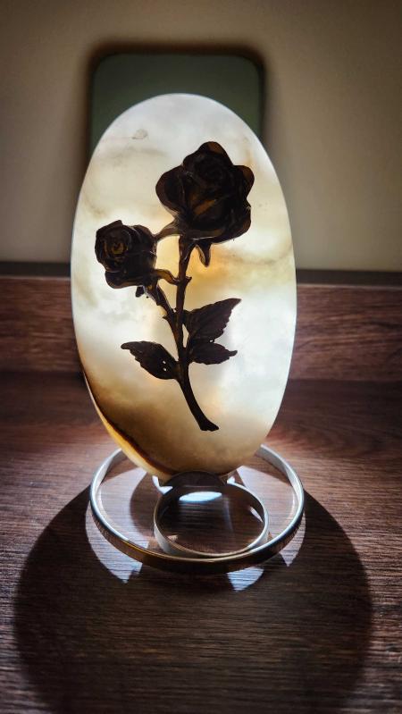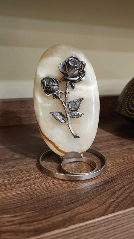 Vintage gümüş kaplama gül figürlü dekoratif onyx mermer obje