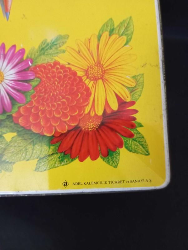 Vintage kalem kutusu teneke içi boş başlıklı antika/koleksiyon objesi Türkiye menşe’lidir. 1950-1999 arası dönemine aittir.