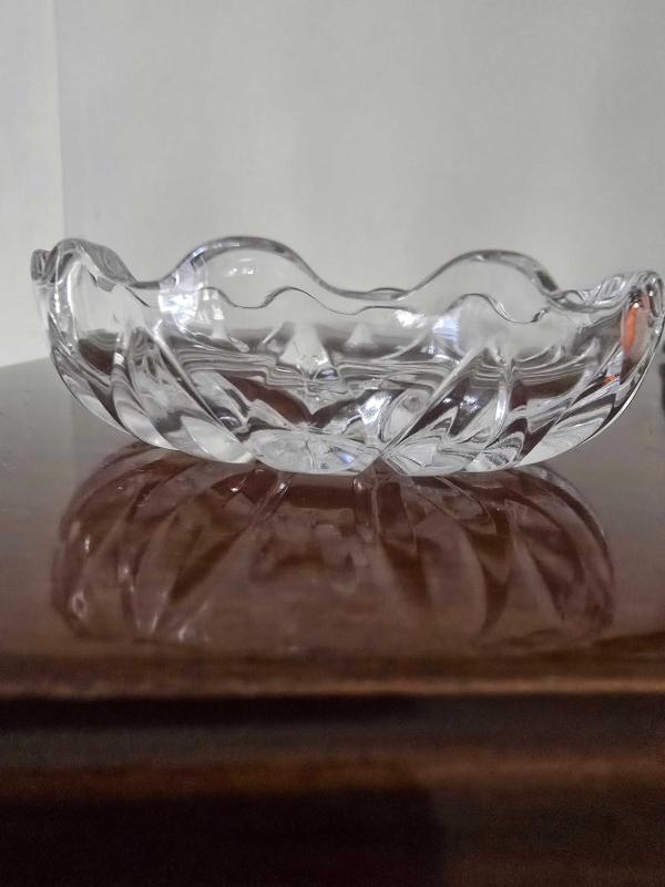 Vintage kesme (kristal görünümlü) camdan yapılmış, kenarları dalgalı, yıldız ve yaprak benzeri geometrik desenlere sahip küçük kase (çerezlik/mezelik), 10 saat önce kitantik’te satışa sunulmuştur.