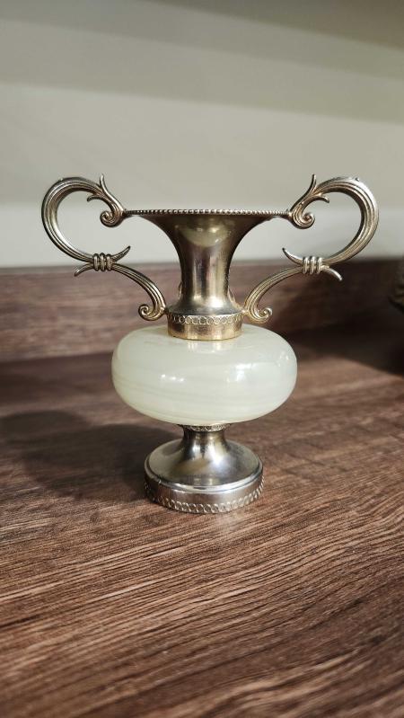 Vintage onyx mermer şamdan 10 cm başlıklı antika/koleksiyon objesi Avrupa menşe’lidir. Objenin ait olduğu dönem bilinmeketedir.