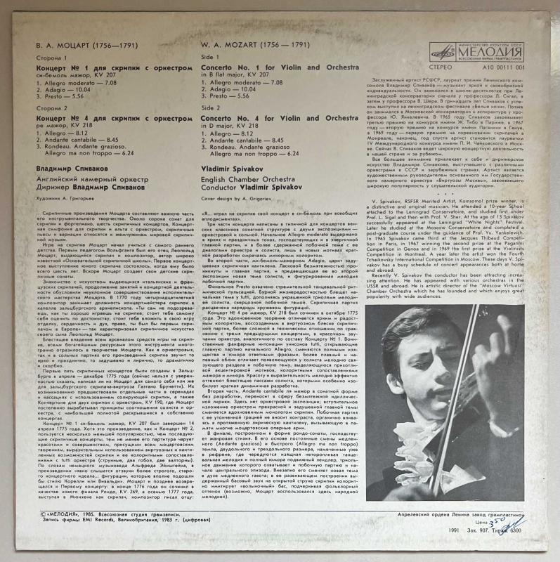 W. A. Mozart Vladimir Spivakov, English Chamber Orchestra Concertos Nos.1 And 4 For Violin And Orchestra Lp Plak Kapak 8 / Plak 9 Yasal mevzuat gereği plak, kaset, kitap, cd, dergi gibi ürünler kopyalanabilir kategoride olduğundan doğrudan iadeye uygun değildir