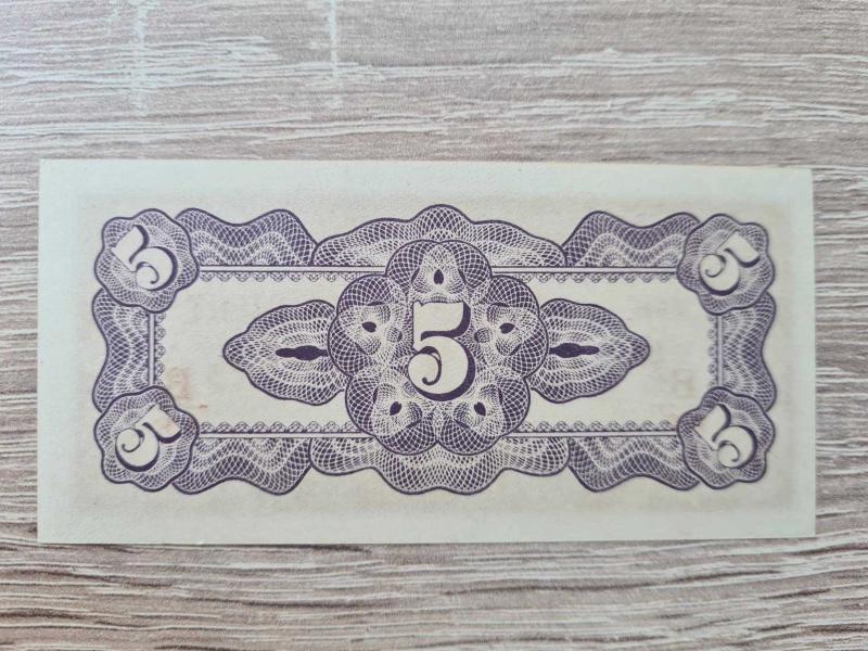 Dönem: II. Dünya Savaşı, 1942–1945 Japon işgal emisyonları (“THE JAPANESE GOVERNMENT”). Bölgeler & Tipler: Malaya – 1 Dollar (MO): Dolar birimli Malaya baskısı; meyve demeti ve yoğun giyotaj desen, yanlarda “MO” seri kodu. Burma – 5 Cents (AR – kırmızı B): Cent kupür; ön yüzde “AR” blok harfleri ve kırmızı B işareti, arkada büyük “5” giyotaj. Kondisyon: 1 Dollar (MO): EF/AU – temiz yüzey, canlı baskı, çok hafif kenar tonlaması. 5 Cents (AR): UNC/AU – köşeler sivri, kat izi yok, görseldeki küçük noktasal leke dışında kusursuz. Orijinallik: Dönem kâğıdı ve tipografisiyle uyumlu orijinal JIM banknotlarıdır; reprodüksiyon/dekor değildir. Kısa Tarihçe: Japon İmparatorluğu, işgal ettiği Malaya ve Burma’da yerel para yerine JIM’i dolaşıma sürdü. Savaş bitince hızla tedavülden kalktılar; bugün temiz örnekler, bölge/birim çeşitliliği sağlayan koleksiyon taşlarıdır.