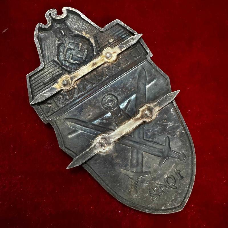 WW2 Nazi Almanyası Demjansk Kalkanı başlıklı antika/koleksiyon objesi Avrupa menşe’lidir. 1940 sonrası dönemine aittir.
