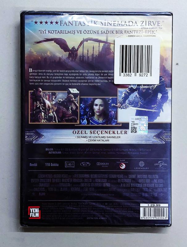2016 yılında vizyona giren, dünyaca ünlü oyun serisi World of Warcraft'ın beyaz perdeye uyarlanmış film versiyonu. DVD, 2017 yılında basılmıştır. Basıldığı yıldan bu yana -yaklaşık 9 yıldır- ambalajı hiç açılmamıştır. Türkçe dublaj ve Türkçe altyazı mevcuttur. Disk içerisinde; silinmiş ve uzatılmış sahneler, çekim hataları gibi özel içerikler bulunmaktadır. Fiziksel olarak DVD film koleksiyonu yapanlar ve Warcraft hayranları için bulunması zor, arşivlik ve koleksiyon değeri yüksek bir üründür.