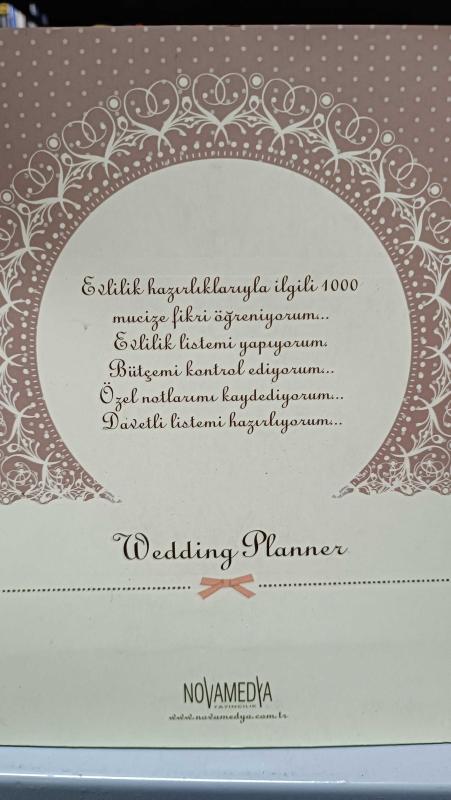 Kitap 2012 yılında Nova tarafından yayınlanmıştır. Wedding Planner, Düğün Planlayıcısı ve İpuçları Kitabı adlı eser Türkçe dilindedir.