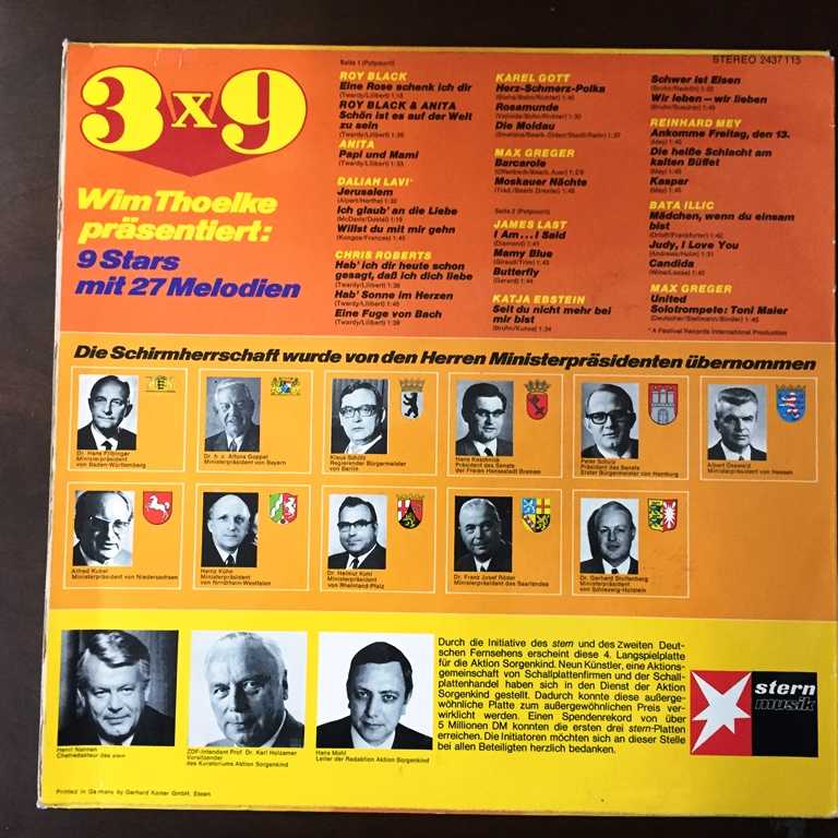 Wim Thoelke Präsentiert: 3x9 - 9 Stars Mit 27 Melodien, Ausgabe 1972 - Yabancı 33'lük Plak - ALMANYA BASKI, en son bir ay önce güncellenmiştir.