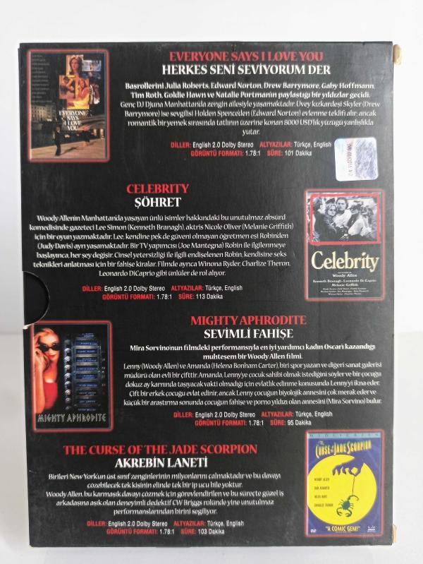 Woody Allen Box Set DVD Film 4 CD Collection 1 - Altyazılı - Everyone Says I Love You - Celebrity - Mighty Aphrodite - The Curse Of The Jade Scorpion, 6 ay önce satışa sunulmuştur.