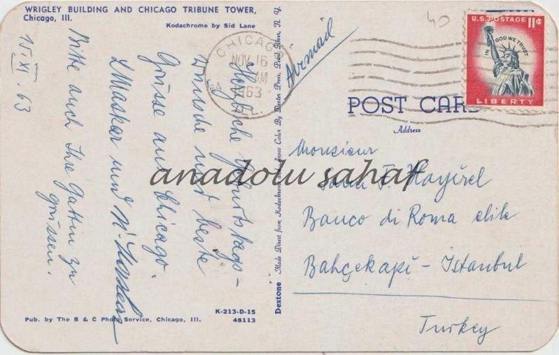 Wrigley Building and Chicago Tribune Tower, Chicago, 1963 / Postadan Geçmiş, Pullu, Damgalı Arka yüzü Almanca yazılı.