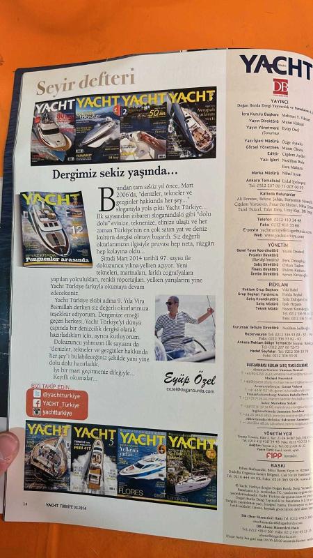 Kitap DİNÇBİLGİN tarafından yayınlanmıştır. 176 sayfadır. YACHT DERGİSİ - MART 2014 - EYÜP ÖZEL – ÖZGE AYTULU – MURAT ÖKSÜZ – ÇİĞDEM AYDIN – NESLİHAN BOLE – ESRA MAKARA – NIHAN AYAN – ERDAL İPEKEŞEN – ALİ BORATAV – BEHZAT ŞAHİN – BÜNYAMİN SÜRMELİ – ÇİĞDEM YURTSEVER – PINAR GEDİKÖZER – SÜHA UMAR – TANIL TUNCEL – TALAT KIRIŞ – UZAY KİŞİ – SEDAT ÖZTÜRK – GERMAN FRERS – UMBERTO FELCI – TAN SAĞTÜRK – KNUT FROSTAD – YÜCEL KÖYAĞASIOĞLU - VELASCO 43: YILIN MOTORYATI – PERSHING 62: 46 KNOT’LIK PERFORMANS – 2014 MODEL 12 RIB: KAMARALI VE HIZLI – EU4PHORIA 54 VE DUFOUR 560 GL: DÜNYA PRÖMİYERLERİ – TAN SAĞTÜRK: “ARTIK DENİZDE OLMAK İSTİYORUM” – COLUMBUS 405 HYBRID: LÜKS AMA ÇEVRECİ – ANTARKTİKA’DA PENGUENLER ARASINDA – YATMARKET: EN KAPSAMLI TEKNE ALIM-SATIM REHBERİ – DUFOUR 560: UMBERTO FELCI’DEN TASARIM DETAYLARI – MEGAYAT: MANGUSTA 110 – BENETTI CS 132 – BOSTON WHALER 345 CONQUEST – ADMIRAL 131 – H2O MARIN VE ADMIRAL TÜRKİYE’DE – VW BEETLE TESTİ – “DENİZİN KANATLI PERİLERİ” KİTABI – VAPUR DONATANLARI VE ACENTELERİ TARİHİ – CUNDA BALIKÇI - 176 SAYFA adlı eser Türkçe dilindedir.