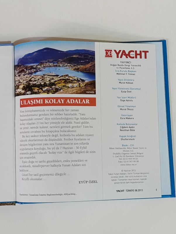Eser Esra Makara editörlüğünde hazırlanmıştır. Kitap 2013 yılında Doğan Burda tarafından [İstanbul ] yayınlanmıştır. 48 sayfadır. YACHT TÜRKİYE DERGİSİ YAKIN YUNAN ADALARI adlı eser Türkçe dilindedir. Eserin içeriğinde Türkçe dilinde bölümlere de yer verilmektedir.