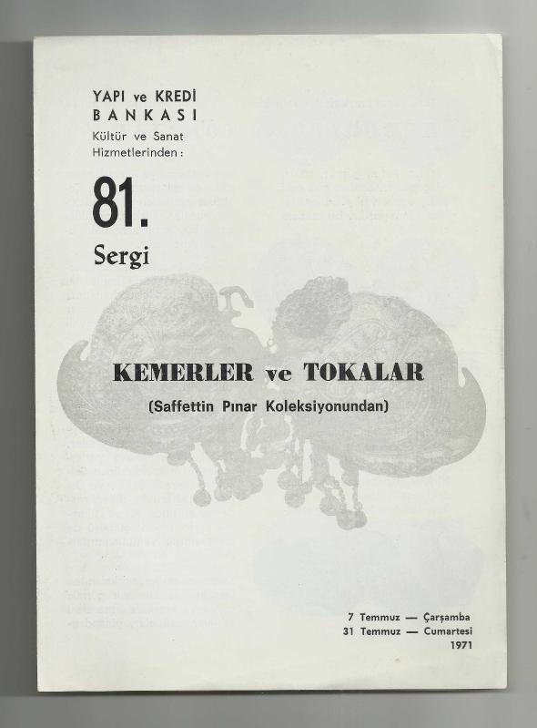 YAPI VE KREDİ BANKASI / SAFFETTİN PINAR - KEMERLER VE TOKALAR 81.SERGİ BROŞÜRÜ..., 4 gün önce satışa sunulmuştur.