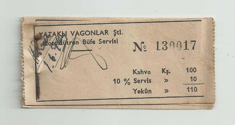 ** YATAKLI VAGONLAR ŞTİ.MOTÖRLÜ TREN BÜFE SERVİSİ BİLETLERİ ** 4 adet mevcut,hepsi çok iyi kondüsyonda...