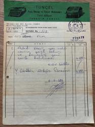 YAZI MAKİNASI BAKIM VE TEMİZLİK FATURASI - 6 HAZİRAN 1986 - TUNÇEL - YAZI, HESAP VE TEKSİR MAKİNALARI TAMİR ATÖLYESİ - İBRAHİM TUNÇEL - BEYOĞLU, İSTANBUL - OSMAN FAHİR SEDEN, O.F.S. PRODÜKSİYON - BEYOĞLU, İSTANBUL - ISLAK İMZALI, KAŞELİ - 20 x 27 cm EBATLI ORİJİNAL FATURA - TÜRK SİNEMA - FİLM TARİHİ başlıklı ürün, Efemera, Müzik, Sinema > Belge ve Evraklar > Finansal Belge ve Evrak > Fatura kategorisi altında İkinci El olarak satılmaktadır.