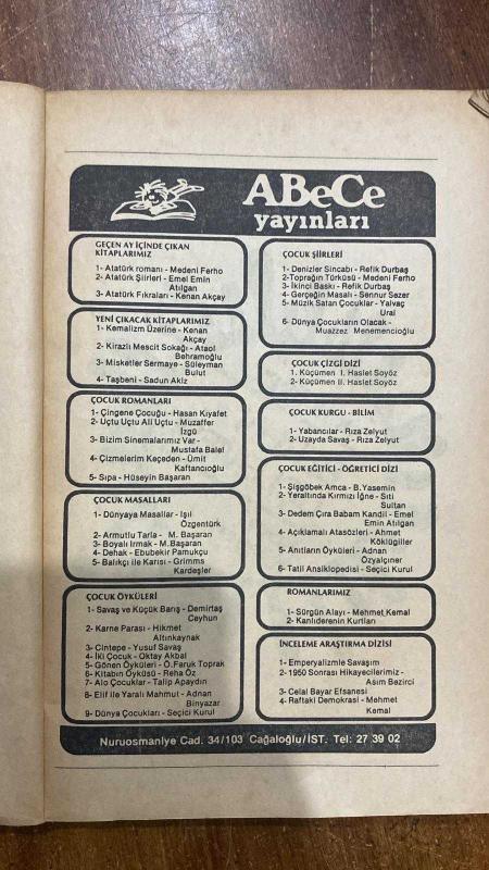 YAZKO EDEBİYAT DERGİSİ - MAYIS 1981 SAYI: 7 - İLHAMİ BEKİR TEZ - MURAT TUNCEL - AHMET OKTAY - ATAMAN TANGÖR - AFŞAR TİMUÇİN - H. İ. DİNAMO - OKTAY RİFAT - SABAHATTİN KUDRET - CAN YÜCEL - ŞÜKRAN KURDAKUL - FİKRET HAKAN - HİLMİ YAVUZ - RUŞEN HAKKI - ATAOL BEHRAMOĞLU - REFİK DURBAŞ - AHMET CEMAL - YAŞAR MİRAÇ - TUNCER TANYOL - MEHMET ÇELİK - ADNAN ÖZER - ZEYYAT SELİMOĞLU - ORHAN DURU - BURHAN GÜNEL - MUZAFFER İLHAN ERDOST - RECEP SELAHATTİN - HÜSEYİN FERHAD - MEHMET BAŞARAN - MUSTAFA CEM - CAHİT KÜLEBİ - HİDAYET KARAKUŞ - SELAHATTİN BAĞDATLI - SEMİH ACAR - NACİ ÇELİK - AFŞAR TİMUÇİN - CENGİZ GÜNDOĞDU - BEHİÇ DUYGULU - ÖNER CİRAVOĞLU - ZEYNEP KARABEY - LHAMİ BEKİR TEZ - YAZININ TOPLUMSALLAŞMASI - FREUD’CULUĞUN SANATA YANSIMASI - XVIII. YÜZYILIN FELSEFE KALITIMI - ŞİİR - ÖYKÜ - İLHAN’A MEKTUPLAR - ŞİİR ÖZELİNDE İÇERİK SORUNU - KÖPRÜLÜ VE TÜRK YAZIN KAYNAKLARI - ANAMDAN DİNLEDİKLERİM - AHMET CEMAL’E SORULAR - ÖDÜLLER - KİTAPLAR - 80 SAYFA, M.KEMAL AĞAOĞLU tarafından kaleme alınmıştır. Eser MEHMET FUAT editörlüğünde hazırlanmıştır. Kitap . tarafından [Ağaoğlu Matbaacılık] yayınlanmıştır. 80 sayfadır. YAZKO EDEBİYAT DERGİSİ - MAYIS 1981 SAYI: 7 - İLHAMİ BEKİR TEZ - MURAT TUNCEL - AHMET OKTAY - ATAMAN TANGÖR - AFŞAR TİMUÇİN - H. İ. DİNAMO - OKTAY RİFAT - SABAHATTİN KUDRET - CAN YÜCEL - ŞÜKRAN KURDAKUL - FİKRET HAKAN - HİLMİ YAVUZ - RUŞEN HAKKI - ATAOL BEHRAMOĞLU - REFİK DURBAŞ - AHMET CEMAL - YAŞAR MİRAÇ - TUNCER TANYOL - MEHMET ÇELİK - ADNAN ÖZER - ZEYYAT SELİMOĞLU - ORHAN DURU - BURHAN GÜNEL - MUZAFFER İLHAN ERDOST - RECEP SELAHATTİN - HÜSEYİN FERHAD - MEHMET BAŞARAN - MUSTAFA CEM - CAHİT KÜLEBİ - HİDAYET KARAKUŞ - SELAHATTİN BAĞDATLI - SEMİH ACAR - NACİ ÇELİK - AFŞAR TİMUÇİN - CENGİZ GÜNDOĞDU - BEHİÇ DUYGULU - ÖNER CİRAVOĞLU - ZEYNEP KARABEY - LHAMİ BEKİR TEZ - YAZININ TOPLUMSALLAŞMASI - FREUD’CULUĞUN SANATA YANSIMASI - XVIII. YÜZYILIN FELSEFE KALITIMI - ŞİİR - ÖYKÜ - İLHAN’A MEKTUPLAR - ŞİİR ÖZELİNDE İÇERİK SORUNU - KÖPRÜLÜ VE TÜRK YAZIN KAYNAKLARI - ANAMDAN DİNLEDİKLERİM - AHMET CEMAL’E SORULAR - ÖDÜLLER - KİTAPLAR - 80 SAYFA adlı eser Türkçe dilindedir.