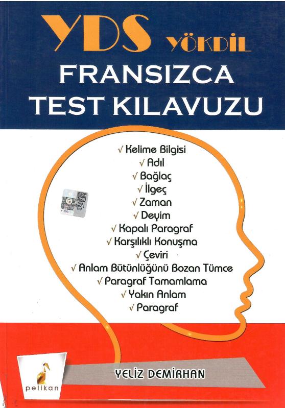 YDS YÖKDİL Fransızca Test Kılavuzu, Yeliz Demirhan tarafından kaleme alınmıştır. Kitap 2021 yılında Pelikan Yayınevi tarafından [Ankara] 9789752428560 ISBN kodu ile yayınlanmıştır. 362 sayfadır. YDS YÖKDİL Fransızca Test Kılavuzu adlı eser Fransızca dilindedir. Eserin içeriğinde Türkçe dilinde bölümlere de yer verilmektedir.