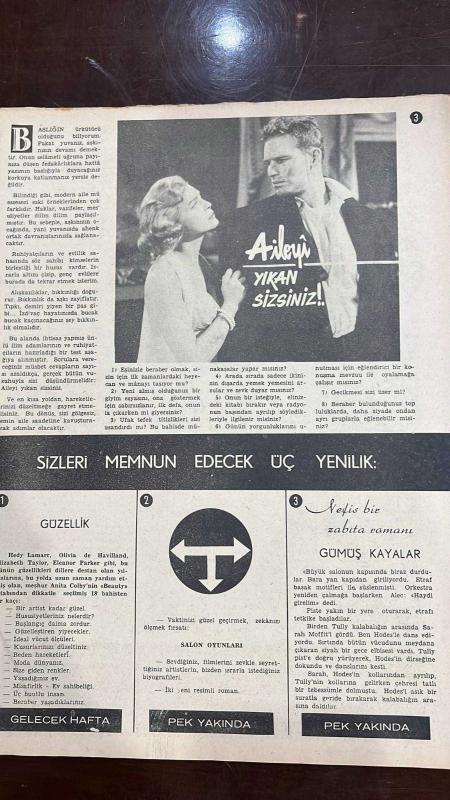 YELPAZE RESİMLİ SALON MECMUASI DERGİSİ - SAYI : 182 - 7 ARALIK 1955 - MAYK HAMMER - ÖMER SAKIP MAYK HAMMER’IN KAZIK BAR MACERASI - KURŞUN YAĞMURU VE İNTİKAM - KİMLİK OYUNLARI VE YUMRUKLU ADALET - KAYBOLAN ZÜMRÜT’ÜN HABERCİSİ - JALE’NİN KİTAPLARINDAKİ HAZİNE - BİR PUSULA, BİR PİŞMANLIK - KİTAPÇILARDA KAYBOLAN İZLER - MACERA VE MERAKLA DOLU BİR TAKİP MAYK HAMMER’IN KAZIK BAR MACERASI YAZAN: Ömer Sakıp - BAYRAKTARIN NİSANLISI FOTOROMANI - OĞUZ KORA - SAFİYE HANIM HOROZ DÖVÜŞÜ - DENİZLİ VE HİNT HOROZLARI - ÜSKÜDAR’DA KIRKPINAR KAHVESİ - KANLI EĞLENCELERİN ELEŞTİRİSİ - SELMA’NIN TRENDE MUYO’YU BULMASI - KISKANÇLIK VE AFFETME - KADINLIK SANATI - EVLİLİKTE TEMİZLİK, NAZİK DAVRANIŞ VE GÖZLERİN DİLİ - ERKEĞİ KAZANMANIN PRATİK YOLLARI - EV İŞLERİ, DİKİŞ, YEMEK VE GÜNLÜK İTİNA HOROZ DÖVÜŞÜ HİKÂYESİ YAZAN: Oğuz Kora FOTOĞRAF: Hilmi Gümüşde - SELMA VE MUYO HİKÂYESİ - KADINLIK SANATI VE EVLİLİKTE İTİNA HİKAYESİ - ANITA COLBY - HEDY LAMARR - OLIVIA DE HAVILLAND - ELIZABETH TAYLOR -34 SAYFA adlı eser, Kitap > Süreli Yayınlar > Dergiler > Magazin, Moda kategorisinde İkinci El olarak satıştadır.
