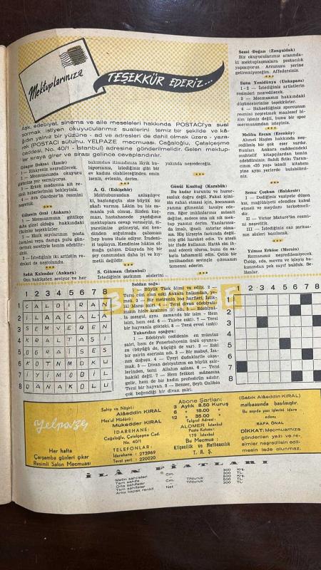 YELPAZE RESİMLİ SALON Mecmuası DERGİSİ - SAYI : 193 - 22 ŞUBAT 1956 -GÜNGÖR DOKSAT – GÜLSEVİN ORAL – SADIK KALENDER - GÖNÜL KIZILTUĞ – SEZAİ DOĞAN – SUNA YENİDÜNYA – MELILIA ERCAN – SEMA ÇOŞKUN – YILMAZ ERKÖSE – SAFA ÖNAL – ALAEDDIN KIRAL – MUKADDER KIRAL – TURHAN BEY – GLORIA GRAHAM – ELEANOR PARKER – PAUL HENDRELD – BETTE DAVIS – VICTOR MATURE – AVA GARDNER LOUIS PHILIPPE KREMLERİ – POSTACI’YA MEKTUPLAR – OKUYUCU TAVSİYELERİ – ÇARŞAMBA GÜNLERİ YAYINLANAN YELPAZE MECMUASI – MODA KREASYONLARI – HOLLYWOOD HABERLERİ – EVLİLİKTE TEHLİKELİ DÖNEMLER – BOŞANMA İSTATİSTİKLERİ – EVLİLİKTE CİNSİ UYUM VE SOSYAL FARKLILIKLAR - UZUN MEHMET – NEW YORK – ZONGULDAK – KARABÜK – SAFRANBOLU – KIRIKKALE – RAMAN – ANKARA – PARİS – LONDRA – SIDNEY – KANADA – MARSİLYA – HOLYWOOD – ALKAPON – DILLINGER – ZİHNİ – CİNGÖZ – FANTOMA – LÜPEN – NAT PINKERTON – MAYK HAMMER – ŞERLOK HOLMES KÜÇÜK ŞEHİR BÜYÜK ŞEHİR – KÖYDEN ŞEHRE GÖÇ – SANAYİLEŞMENİN ETKİSİ – ŞEHİR VE KASABA KARŞILAŞMASI – MEDENİYETİN IŞI - 34 SAYFA adlı eser, Kitap > Süreli Yayınlar > Dergiler > Magazin, Moda kategorisinde İkinci El olarak satıştadır.
