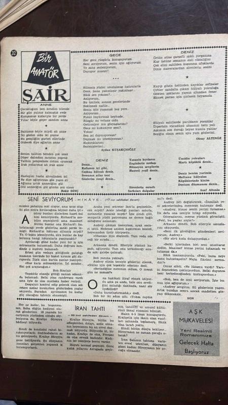 YELPAZE RESİMLİ SALON Mecmuası DERGİSİ - SAYI : 230 - 7 KASIM 1956 -BEKIR DING – AYDAN KUSAKÇIOĞLU – ASAF ALTINÖZ – MEHMED SEYDA – BOB SINCLAIR – SÜREYYA – OLEAY ALTINÖZ – JEAN CHAPEL – PATIL PAGE – HELEN MORGAN – FRANK SINATRA – JOE E LEWIS – JEANNE CRAIN – DICK HAYMES – DEAN MARTIN – BING CROSBY – GARY CROSBY – DON BAND OF GOLDS CHERRY – SHARON KAY RITCHIE – BENNY GOODMAN – ELVIS PRESLEY – H G SAPERSTEIN – TENNESSEE ERNIE FORD – CUMHUR ALP ROJA GÜZELLİK MÜSTAHZARATI – ANNE ŞİİRİ – GECE ŞİİRİ – DENİZ ŞİİRİ – SENİ SEVİYORUM HİKAYESİ – KRALİÇE SÜREYYA VE İRAN TAHTI – AŞK MUKAVELESİ – ELVIS PRESLEY HAKKINDA – TINA MARIE ŞARKI SÖZLERİ – RADYO PROGRAMLARI VE GECE YAYINLARI MEHMED SEYDA – SENİ SEVİYORUM HİKAYESİ OLEAY ALTINÖZ – ÜMİDİN YOLCULARI HİKAYESİ - DOLMBAHÇEDE ÖLÜM GÜNÜ SABAHI - ATATÜRK - ZAFER SÜLEK – HUNG PING-LU – NELLIE DAVIDSON – ERDOGAN – AMY VANDERBILT – GALIP ADAB-I MUAŞERET KURALLARI – GENÇLER İÇİN ZİYAFET VE LOKANTA NEZAKETİ – RANDEVU KURALLARI VE SOSYAL İLET - 34 SAYFA adlı eser, Kitap > Süreli Yayınlar > Dergiler > Magazin, Moda kategorisinde İkinci El olarak satıştadır.