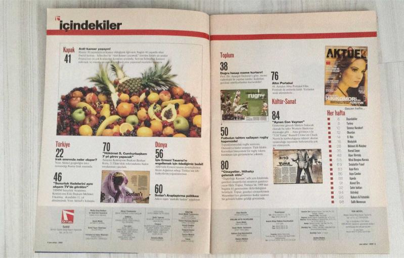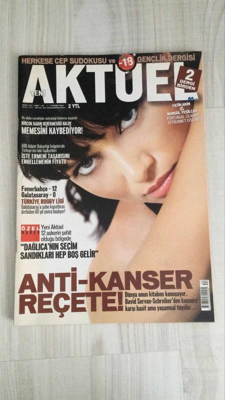 YENİ AKTÜEL HAFTALIK HABER DERGİSİ - SAYI 121 - 1/7 KASIM 2007 BİRÇOK KADIN GEREKSİZ AMELİYATLA MEMESİNİ KAYBEDİYOR - DOĞRU HESAP MEME KURTARIR: RADYOLOJİ VE CERRAHİ TARTIŞMASI - DAVID SERVAN-SCHREIBER’DEN ANTI-KANSER YAŞAM REÇETESİ - DAĞLICA’NIN SEÇİM SANDIKLARI HEP BOŞ GELİR - ERMENİ TASARISINI ENGELLEMENİN FİYATI: ABD LOBİ BELGELERİYLE - SUSURLUK İFADELERİNE TV’DE ŞAHİTLİK: MEHMET ELKATMIŞ ANLATIYOR - BURHAN KUZU: HÜKÜMET 5, CUMHURBAŞKANI 7 YIL GÖREV YAPACAK - SUDAN’DA ARAPLAŞTIRMA POLİTİKASI: MAHALLE BASKISI - FATİH AKIN & NURGÜL YEŞİLÇAY: PORTAKAL OLMADI, İSTİKAMET OSCAR - TÜRKİYE RUGBY LİGİ BAŞLIYOR: FUTBOLUN TAHTI SALLANIYOR - HIFZI TOPUZ: GAZETECİ CİNAYETLERİ İTTİHATÇI GELENEĞE DÖNÜŞTÜ - ALTIN PORTAKAL 44. KEZ SAHNELERDE - “3:10 YUMA” VE WESTERN DALGASI: RUSSELL CROWE SAHNEDE - DAVID SERVAN-SCHREIBER - MEHMET ELKATMIŞ - BURHAN KUZU - FATİH AKIN - NURGÜL YEŞİLÇAY - HIFZI TOPUZ - RUSSELL CROWE - MEHMET ALİ KILIÇBAY - KEMAL SAYAR - ALPER GÖRMÜŞ - NIHAL BENGİSU KARACA - 98 SAYFA, Ercan Arıklı tarafından kaleme alınmıştır. Eser Önay Bilgin editörlüğünde hazırlanmıştır. Kitap 1 Numara Hearst Yayıncılık tarafından yayınlanmıştır. 98 sayfadır. YENİ AKTÜEL HAFTALIK HABER DERGİSİ - SAYI 121 - 1/7 KASIM 2007 BİRÇOK KADIN GEREKSİZ AMELİYATLA MEMESİNİ KAYBEDİYOR - DOĞRU HESAP MEME KURTARIR: RADYOLOJİ VE CERRAHİ TARTIŞMASI - DAVID SERVAN-SCHREIBER’DEN ANTI-KANSER YAŞAM REÇETESİ - DAĞLICA’NIN SEÇİM SANDIKLARI HEP BOŞ GELİR - ERMENİ TASARISINI ENGELLEMENİN FİYATI: ABD LOBİ BELGELERİYLE - SUSURLUK İFADELERİNE TV’DE ŞAHİTLİK: MEHMET ELKATMIŞ ANLATIYOR - BURHAN KUZU: HÜKÜMET 5, CUMHURBAŞKANI 7 YIL GÖREV YAPACAK - SUDAN’DA ARAPLAŞTIRMA POLİTİKASI: MAHALLE BASKISI - FATİH AKIN & NURGÜL YEŞİLÇAY: PORTAKAL OLMADI, İSTİKAMET OSCAR - TÜRKİYE RUGBY LİGİ BAŞLIYOR: FUTBOLUN TAHTI SALLANIYOR - HIFZI TOPUZ: GAZETECİ CİNAYETLERİ İTTİHATÇI GELENEĞE DÖNÜŞTÜ - ALTIN PORTAKAL 44. KEZ SAHNELERDE - “3:10 YUMA” VE WESTERN DALGASI: RUSSELL CROWE SAHNEDE - DAVID SERVAN-SCHREIBER - MEHMET ELKATMIŞ - BURHAN KUZU - FATİH AKIN - NURGÜL YEŞİLÇAY - HIFZI TOPUZ - RUSSELL CROWE - MEHMET ALİ KILIÇBAY - KEMAL SAYAR - ALPER GÖRMÜŞ - NIHAL BENGİSU KARACA - 98 SAYFA adlı eser Türkçe dilindedir.