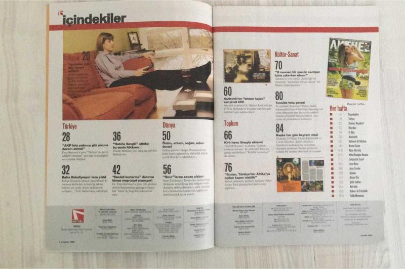 YENİ AKTÜEL HAFTALIK HABER DERGİSİ - SAYI 145 - 17/23 NİSAN 2008 BAFRASPOR CİNAYETLERİNİN EN ŞÜPHELİ İSMİ KENDİNİ YARGILADI - KARBON EMİSYON BORSASI: KİRLİ HAVA ALINIR SATILIR - SUDAN ORDUSUNU GİYDİREN TÜRK İŞADAMI OKTAY ERCAN - MÜNİR ÖZKUL PATLAMASI: “YAŞAR USTA” KRİTERLERİ TOPLUMSAL HAREKETE DÖNÜŞÜYOR - DR. HİKMET KIVILCIMLI’NIN KAYIP ARŞİVİ: ZİNDAN HAYATI VE GİZLİ BÖLÜMLER - OTURDUĞUN YERDEN KİLO VER: YATALAK HASTALAR İÇİN GELİŞTİRİLDİ - “HATIRLA SEVGİLİ” TAŞ GİBİ BİR DİZİ, POLİTİK FİLMİMİZ YOK AMA… - “DEVLETİ KURTARMA” GEREKÇESİ: ENES KABAKERYA’DAN İSLAM VE SEKÜLARİZM TARTIŞMASI - SERGIO RAMAZZOTTI’DEN BETON DUVARLARLA ÇEVRİLİ BATI ŞERİA İZLENİMLERİ - SINIRLARINI SAVAŞ ÇİZİYOR: SINIR TANIMAYAN DOKTORLAR’DAN KRİZ BÖLGELERİNE TANIKLIK - RAMAZAN ÖNEN’DEN TUVALDE KINA GECESİ: PARMAKLARLA RESİM - FUAT KEYMAN - HİKMET KIVILCIMLI - MÜNİR ÖZKUL - RAMAZAN ÖNEN - ENES KABAKERYA - SERGIO RAMAZZOTTI - OKTAY ERCAN - MEHMET ALİ KILIÇBAY - KEMAL SAYAR - ALPER GÖRMÜŞ - NIHAL BENGİSU KARAC 98 SAYFA, Ercan Arıklı tarafından kaleme alınmıştır. Eser Önay Bilgin editörlüğünde hazırlanmıştır. Kitap 1 Numara Hearst Yayıncılık tarafından yayınlanmıştır. 98 sayfadır. YENİ AKTÜEL HAFTALIK HABER DERGİSİ - SAYI 145 - 17/23 NİSAN 2008 BAFRASPOR CİNAYETLERİNİN EN ŞÜPHELİ İSMİ KENDİNİ YARGILADI - KARBON EMİSYON BORSASI: KİRLİ HAVA ALINIR SATILIR - SUDAN ORDUSUNU GİYDİREN TÜRK İŞADAMI OKTAY ERCAN - MÜNİR ÖZKUL PATLAMASI: “YAŞAR USTA” KRİTERLERİ TOPLUMSAL HAREKETE DÖNÜŞÜYOR - DR. HİKMET KIVILCIMLI’NIN KAYIP ARŞİVİ: ZİNDAN HAYATI VE GİZLİ BÖLÜMLER - OTURDUĞUN YERDEN KİLO VER: YATALAK HASTALAR İÇİN GELİŞTİRİLDİ - “HATIRLA SEVGİLİ” TAŞ GİBİ BİR DİZİ, POLİTİK FİLMİMİZ YOK AMA… - “DEVLETİ KURTARMA” GEREKÇESİ: ENES KABAKERYA’DAN İSLAM VE SEKÜLARİZM TARTIŞMASI - SERGIO RAMAZZOTTI’DEN BETON DUVARLARLA ÇEVRİLİ BATI ŞERİA İZLENİMLERİ - SINIRLARINI SAVAŞ ÇİZİYOR: SINIR TANIMAYAN DOKTORLAR’DAN KRİZ BÖLGELERİNE TANIKLIK - RAMAZAN ÖNEN’DEN TUVALDE KINA GECESİ: PARMAKLARLA RESİM - FUAT KEYMAN - HİKMET KIVILCIMLI - MÜNİR ÖZKUL - RAMAZAN ÖNEN - ENES KABAKERYA - SERGIO RAMAZZOTTI - OKTAY ERCAN - MEHMET ALİ KILIÇBAY - KEMAL SAYAR - ALPER GÖRMÜŞ - NIHAL BENGİSU KARAC 98 SAYFA adlı eser Türkçe dilindedir.