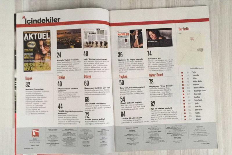 YENİ AKTÜEL HAFTALIK HABER DERGİSİ - SAYI 32 - 21-27 ŞUBAT 2006 - BIÇAKÇI’NIN “YANITLARSAM CEZAMIZ KATLANIR” DEDİĞİ SORULAR - TUĞBA ÖZAY’IN DOĞAL VİAGRASI YOK SATIYOR - 2 MİLYON ‘TEK GÖZLÜ’ İÇİN EHLİYET UMUDU - YENİ AKTÜEL PAPAZ CİNAYETİNİN İZİNDE - ABD-İRAN SAVAŞI SENARYOLARI - USULÜ EVLİLİĞE DÖNÜŞ: ÇÖPÇATAN ARACILIĞIYLA EVLİLİKLER ARTIYOR - SUDOKU’DAN SONRA KAKURO - 93 ‘DUYGUÖLÇER’ ÇİPLE DEPREMLER ÖNCEDEN SAPTANDI - GELECEĞİ GÖSTEREN MEVLANA YUMURTASI - KOMPLO VADİSİ: TRABZON’DA PAPAZ CİNAYETİ - “KONUŞURSAM CEZAMIZ KATLANIR!” - “NATO BOMBARDIMANINDAN KURTULDUK” - IRAK, VIETNAM’DAN DAHA PAHALI SAVAŞ - HOSPITALITYCLUB İLE BEDAVA KONAKLAMA - OKYANUSTA TEK BAŞINA: İLK TÜRK KADIN KAPTAN - SABAH YÜZÜM YOKTU: ISABELLE DINOIRE’İN YÜZ NAKLİ - KADINLAR BU HAPIN PEŞİNDE: CİNSEL İSTEKSİZLİĞE BİTKİSEL ÇÖZÜM - EYVAH BABALAR BÜYÜDÜ! - TRAFİĞE İKİ MİLYON GÖZ: TEK GÖZLÜLERE EHLİYET GELİYOR - BABASININ KIZI: ROSANNE CASH’İN COUNTRY MİRASİ - SİNEMANIN SALINGER’I: “YENİ DÜNYA” FİLMİ - AŞK ON DA 98 SAYFA, Ercan Arıklı tarafından kaleme alınmıştır. Eser Önay Bilgin editörlüğünde hazırlanmıştır. Kitap 1 Numara Hearst Yayıncılık tarafından yayınlanmıştır. 130 sayfadır. YENİ AKTÜEL HAFTALIK HABER DERGİSİ - SAYI 32 - 21-27 ŞUBAT 2006 - BIÇAKÇI’NIN “YANITLARSAM CEZAMIZ KATLANIR” DEDİĞİ SORULAR - TUĞBA ÖZAY’IN DOĞAL VİAGRASI YOK SATIYOR - 2 MİLYON ‘TEK GÖZLÜ’ İÇİN EHLİYET UMUDU - YENİ AKTÜEL PAPAZ CİNAYETİNİN İZİNDE - ABD-İRAN SAVAŞI SENARYOLARI - USULÜ EVLİLİĞE DÖNÜŞ: ÇÖPÇATAN ARACILIĞIYLA EVLİLİKLER ARTIYOR - SUDOKU’DAN SONRA KAKURO - 93 ‘DUYGUÖLÇER’ ÇİPLE DEPREMLER ÖNCEDEN SAPTANDI - GELECEĞİ GÖSTEREN MEVLANA YUMURTASI - KOMPLO VADİSİ: TRABZON’DA PAPAZ CİNAYETİ - “KONUŞURSAM CEZAMIZ KATLANIR!” - “NATO BOMBARDIMANINDAN KURTULDUK” - IRAK, VIETNAM’DAN DAHA PAHALI SAVAŞ - HOSPITALITYCLUB İLE BEDAVA KONAKLAMA - OKYANUSTA TEK BAŞINA: İLK TÜRK KADIN KAPTAN - SABAH YÜZÜM YOKTU: ISABELLE DINOIRE’İN YÜZ NAKLİ - KADINLAR BU HAPIN PEŞİNDE: CİNSEL İSTEKSİZLİĞE BİTKİSEL ÇÖZÜM - EYVAH BABALAR BÜYÜDÜ! - TRAFİĞE İKİ MİLYON GÖZ: TEK GÖZLÜLERE EHLİYET GELİYOR - BABASININ KIZI: ROSANNE CASH’İN COUNTRY MİRASİ - SİNEMANIN SALINGER’I: “YENİ DÜNYA” FİLMİ - AŞK ON DA 98 SAYFA adlı eser Türkçe dilindedir.