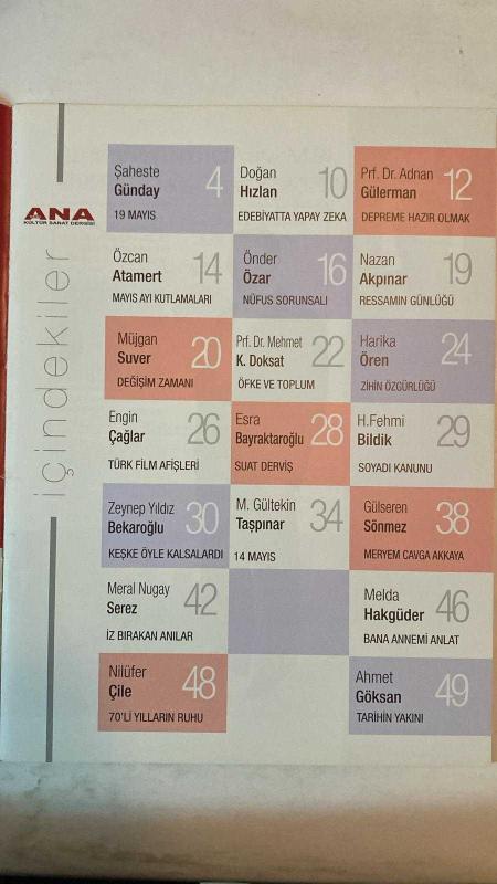 YENİ ANA KÜLTÜR SANAT, ŞİİR DERGİSİ - MAYIS - HAZİRAN 2023 - SAYI: 72 ŞAHESTE GÜNDAY - DOĞAN HIZLAN - ADNAN GÜLERMAN - ÖZCAN ATAMERT - ÖNDER ÖZAR - NAZAN AKPINAR - MÜJGAN SUVER - MEHMET K. DOKSAT - HARİKA ÖREN - ENGİN ÇAĞLAR - ESRA BAYRAKTAROĞLU - H. FEHMI BİLDİK - ZEYNEP YILDIZ BEKAROĞLU - M. GÜLTEKİN TAŞPINAR - GÜLSEREN SÖNMEZ - MERAL NUGAY SEREZ - MELDA HAKGÜDER - NILÜFER ÇİLE - AHMET GÖKSAN - SUAT GEZGIN - YAŞAR KABA - KEMAL GÖNÜLERİ - DENİZ TOKGÖZ - KASIM ÖZÜMIT - KADİR KEPÇEOĞLU - VEDAT ÇETİNKAYA - ŞİNASİ ESKIKAYA - K. MUZAFFER GENÇER - YUSUF AKÇA - NAGEHAN ORBAY AKAY - MINE ALTAN ERBIL - YILDIZ BÜGET MERTEL - AYTEN ÇELEBI - ALTAN AKIŞIK - GÜLŞEN ŞENDERIN - RUKIYE KARAKÜDÜK - MÜJGAN ÖZGÜREL - DOĞUDAN BAYÜLGEN - MAZHAR AYKUT - GÜNSELİ YETKIN - MERYEM CAVGA AKKAYA EDEBİYATTA YAPAY ZEKA - DEĞİŞİM ZAMANI - TÜRK FİLMLERİNİN ÖZEL AFİŞLERİ - ZİHİN ÖZGÜRLÜĞÜNE KİLİT VURULMAZ - SOYADI KANUNU VE ATATÜRK - 19 MAYIS ATATÜRK'Ü ANMA GENÇLİK VE SPOR BAYRAMI - DEPREME HAZI - TAM TAKIM 42 SAYFA adlı eser, Kitap > Süreli Yayınlar > Dergiler > Magazin, Moda kategorisinde İkinci El olarak satıştadır.
