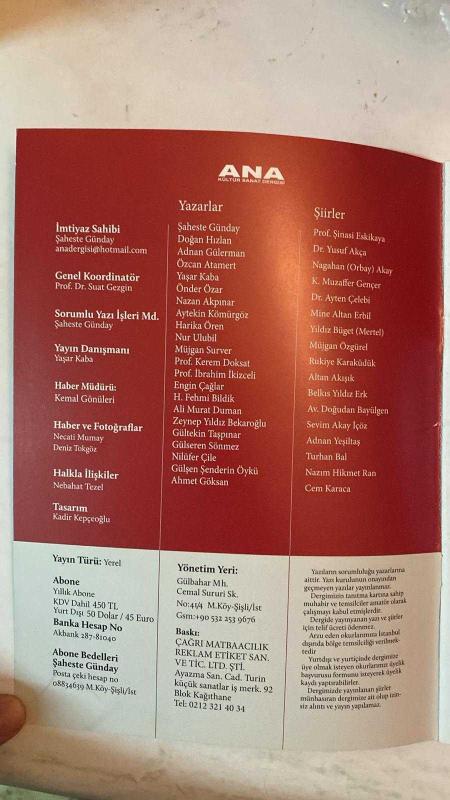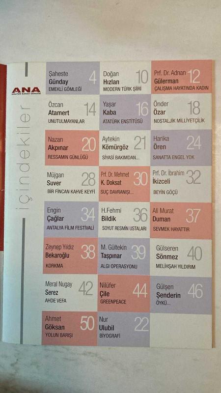 YENİ ANA KÜLTÜR SANAT, ŞİİR DERGİSİ - TEMMUZ - AĞUSTOS 2022 - SAYI: 67 ŞAHESTE GÜNDAY - DOĞAN HIZLAN - ADNAN GÜLERMAN - ÖZCAN ATAMERT - YAŞAR KABA - ÖNDER ÖZAR - NAZAN AKPINAR - AYTEKİN KÖMÜRGÖZ - HARİKA ÖREN - NUR ULUBİL - MÜJGAN SUVER - KEREM DOKSAT - İBRAHİM İKİZCELİ - ENGİN ÇAĞLAR - H. FEHMI BİLDİK - ALİ MURAT DUMAN - ZEYNEP YILDIZ BEKAROĞLU - GÜLTEKİN TAŞPINAR - GÜLSEREN SÖNMEZ - NİLÜFER ÇİLE - GÜLŞEN ŞENDERİN - AHMET GÖKSAN - ŞİNASİ ESKİKAYA - YUSUF AKÇA - NAGAHAN ORBAY AKAY - K. MUZAFFER GENÇER - AYTEN ÇELEBİ - MİNE ALTAN ERBİL - YILDIZ BÜGET MERTEL - MÜJGAN ÖZGÜREL - RUKİYE KARAKÜDÜK - ALTAN AKIŞIK - BELKIS YILDIZ ERK - DOĞUDAN BAYÜLGEN - SEVİM AKAY İÇÖZ - ADNAN YEŞİLTAŞ - TURHAN BAL - NAZIM HİKMET RAN - CEM KARACA EMEKLİ GÖMLEĞİ - MODERN TÜRK ŞİİRİ NASIL OKUNMALI - TÜRK ÇALIŞMA HAYATINDA KADIN - NOSTALJİK MİLLİYETÇİLİK - SANATTA ENGEL YOK VAKFI - UNUTULMAYANLAR - ATATÜRK ENSTİTÜSÜ - RESSAMIN GÜNLÜĞÜ - SİYASİ BAKIMDAN - BİR FİNCAN KAHVE KEYFİ - SUÇ DAVRAN - TAM TAKIM 42 SAYFA adlı eser, Kitap > Süreli Yayınlar > Dergiler > Magazin, Moda kategorisinde İkinci El olarak satıştadır.