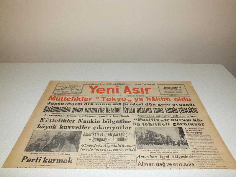YENİ ASIR GAZETESİ / 28 AĞUSTOS 1945 / MÜTTEFİKLER TOKYO' YA HAKİM OLDU adlı eser, Kitap > Süreli Yayınlar > Gazeteler kategorisinde İkinci El olarak satıştadır.
