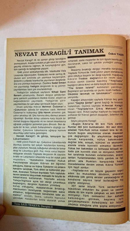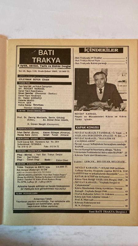 YENİ BATI TRAKYA DİKİ AYLIK AKTÜEL, TARİH VE KÜLTÜR DERGİSİ - OCAK-ŞUBAT 1993 SAYI: 118 SÜLEYMAN SEFER CIHAN - NEVZAT KARAGİL - SİNAN ŞEMLLER - VEDAT ÇORAPÇI - NAZIM ŞEN - SANLYE DEMİR - AHMET ÖMER ÜSTETİK - DERVİŞ MANİZADE - SEVİM GÖKDAĞ - H. ÜMRAN NARGÜL - İRFAN DERİCİ - KAZIM GÜLTEPE - RECEP KARA - İSMAİL TUNALI - Ö. YAŞIN - O. GÖKMEN - E. MANISALI - M. N. ÖZFATURA - ZİYA KURTARAN TÜRKLÜK DÜNYASI İÇİN 52 YILDIR DEVAM EDEN MÜCADELE - BATI TRAKYADA 29 OCAKLAR - BATI TRAKYA BARUT FİÇİSİ - BATI TRAKYADA RABITA PARMAĞI - NEVZAT KARAGİL'İ TANIMAK - YEŞİLADA DERGİSİNİN ANALİZİ - HAYATIM VE ÇALIŞMALARIM - KIBRIS TÜRKLERİNİN PROBLEMLERİ - KIBRIS TÜRK İŞLERİ KOMİSYONU - KATAK İLE KTHP'NİN BİRLEŞMESİ - KIBRIS TÜRK BİRLİĞİ - YEŞİLADA DERGİSİ VE ÇALIŞMALARIM - KIBRIS MESELESİNDE GÖRÜŞ AYRILIKLARI - ÖZAL'IN BALKANLAR SEFERİ - KIBRIS İÇİN YENİ ADIMLAR ATMAK - KIBRIS'TA FEDERASYON TEZİ - YUNAN YÖNETİMİNİN HAKSIZ UYGULAMALARINI BOYKOT - BATI TRAKYA MÜSLÜMAN TÜRK AZINLI - TAM TAKIM EKSİKSİZ 50 SAYFA adlı eser, Kitap > Süreli Yayınlar > Dergiler > Magazin, Moda kategorisinde İkinci El olarak satıştadır.