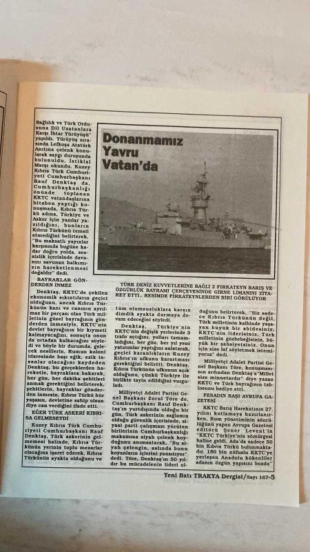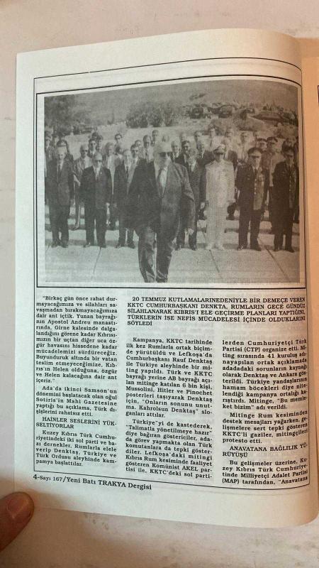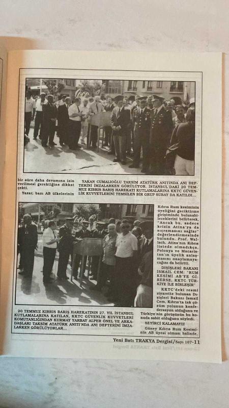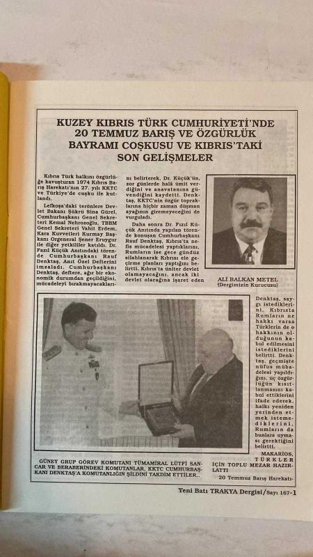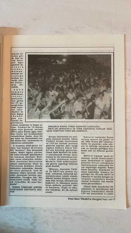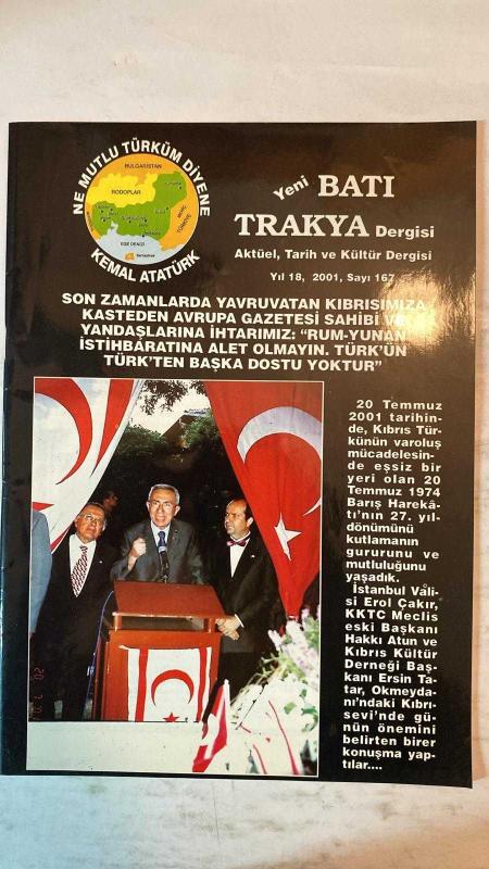 YENİ BATI TRAKYA DİKİ AYLIK AKTÜEL, TARİH VE KÜLTÜR DERGİSİ - TEMMUZ 2001 SAYI: 167 SÜLEYMAN SEFER CİHAN – ALİ BALKAN METEL – MEHMET REFİK ERKOÇAK – NAZIM ŞEN – CENGİZ HACIOĞLU – İHSAN KALKAVAN – İBRAHİM VATANSEVER – HASAN ŞAHİN – TURGAY HAYRULLA – MEHMET TÜRKMEN – SALİH YÖRÜK – ŞENOL IŞKIN – RIDVAN AHMEDİN – İSMAİL TUNALI – İRFAN DERİCİ – RECEP KARA – KAZIM GÜLTEPE – EROL ÇAKIR – HAKKI ATUN – ERSİN TATAR – ŞÜKRÜ SİNA GÜREL – KEMAL NEHROZOĞLU – VAHİT ERDEM – ŞENER ERUYGUR – RAUF DENKTAŞ – MEHMET EMİN AGA – C. ALIOSMAN – ASIM ÇAVUŞOĞLU – MUSTAFA AGA – HASAN ATEŞ – AHMET FAİKOĞLU – GALİP GALİP – N. HASANOĞLU – M. N. ÖZFATURA – H. EMİN – S. KOHEN – METİN ERKSAN 20 TEMMUZ BARIŞ HAREKÂTI’NIN 27. YILI – KKTC’DE COŞKULU TÖRENLER – RAUF DENKTAŞ’TAN MESAJLAR – MAKARIOS’UN TOPLU MEZARLARI – KIBRIS’TA İKİ DEVLET GERÇEĞİ – BATI TRAKYA TÜRKLERİNİN SORUNLARI – İSKEÇE MÜFTÜSÜ MEHMET EMİN AGA’NIN MÜCADELESİ – LOZAN’IN İHLLÂLİ – EĞİTİM VE VAKIF SORUNLARI – MUSTAFA AGA’YA - TAM TAKIM EKSİKSİZ 42 SAYFA, SÜLEYMAN SEFER CİHAN tarafından kaleme alınmıştır. Eser AV. NEVZAT KARAGİL editörlüğünde hazırlanmıştır. YENİ BATI TRAKYA DİKİ AYLIK AKTÜEL, TARİH VE KÜLTÜR DERGİSİ - TEMMUZ 2001 SAYI: 167 SÜLEYMAN SEFER CİHAN – ALİ BALKAN METEL – MEHMET REFİK ERKOÇAK – NAZIM ŞEN – CENGİZ HACIOĞLU – İHSAN KALKAVAN – İBRAHİM VATANSEVER – HASAN ŞAHİN – TURGAY HAYRULLA – MEHMET TÜRKMEN – SALİH YÖRÜK – ŞENOL IŞKIN – RIDVAN AHMEDİN – İSMAİL TUNALI – İRFAN DERİCİ – RECEP KARA – KAZIM GÜLTEPE – EROL ÇAKIR – HAKKI ATUN – ERSİN TATAR – ŞÜKRÜ SİNA GÜREL – KEMAL NEHROZOĞLU – VAHİT ERDEM – ŞENER ERUYGUR – RAUF DENKTAŞ – MEHMET EMİN AGA – C. ALIOSMAN – ASIM ÇAVUŞOĞLU – MUSTAFA AGA – HASAN ATEŞ – AHMET FAİKOĞLU – GALİP GALİP – N. HASANOĞLU – M. N. ÖZFATURA – H. EMİN – S. KOHEN – METİN ERKSAN 20 TEMMUZ BARIŞ HAREKÂTI’NIN 27. YILI – KKTC’DE COŞKULU TÖRENLER – RAUF DENKTAŞ’TAN MESAJLAR – MAKARIOS’UN TOPLU MEZARLARI – KIBRIS’TA İKİ DEVLET GERÇEĞİ – BATI TRAKYA TÜRKLERİNİN SORUNLARI – İSKEÇE MÜFTÜSÜ MEHMET EMİN AGA’NIN MÜCADELESİ – LOZAN’IN İHLLÂLİ – EĞİTİM VE VAKIF SORUNLARI – MUSTAFA AGA’YA - TAM TAKIM EKSİKSİZ 42 SAYFA adlı eser Türkçe dilindedir.