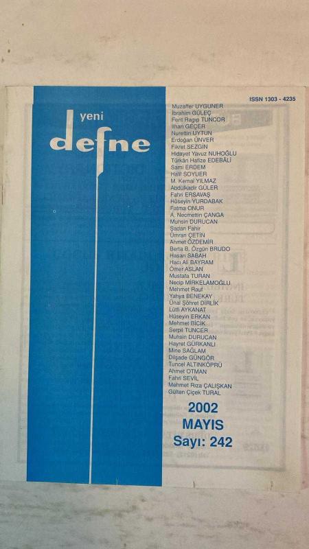 YENİ DEFNE KÜLTÜR, SANAT, ŞİİR VE EDEBİYAT DERGİSİ - MAYIS 2002 — SAYI: 242 MUZAFFER UYGUNER - İBRAHİM GÜLEÇ - FERİT RAGIP TUNCOR - İLHAN GEÇER - NURETTİN UYTUN - ERDOĞAN ÜNVER - FİKRET SEZGİN - HİDAYET YAVUZ NUHOĞLU - TÜRKÂN HAFİZE EDEBÂLİ - SAMİ ERDEM - HALİL SOYUER - M. KEMAL YILMAZ - ABDÜLKADİR GÜLER - FAHRİ ERSAVAŞ - HÜSEYİN YURDABAK - FATMA ONUR - A. NECMETTİN ÇANGA - MUHSİN DURUCAN - ŞADAN FAHİR - ÜMRAN ÇETİN - AHMET ÖZDEMİR - BERTA B. ÖZGÜN BRUDO - HASAN SABAH - HACI ALİ BAYRAM - ÖMER ASLAN - MUSTAFA TURAN - NECİP MIRKELAMOĞLU - MEHMET RAUF - YAHYA BENEKAY - ÜNAL ŞÖHRET DİRLİK - LÜTFİ AYKANAT - HÜSEYİN ERKAN - MEHMET BICIK - SERPİL TUNCER - HAYRET GÜRKANLI - MİNE SAĞLAM - DİLŞADE GÜNGÖR - TUNCEL ALTINKÖPRÜ - AHMET OTMAN - FAHRİ SEVİL - MEHMET RIZA ÇALIŞKAN - GÜLTEN ÇİÇEK TURAL - COŞKUN ERTEPINAR - MEZİYET SEVGÜR - AYLA ERTEPINAR - AYBAR ERTEPINAR - SABRİ DEVECİOĞLU - HAMİDE KİBRİTOĞLU - YUNUS EMRE - KÖROĞLU - KARACAOĞLAN - KEREM İLE ASLI - AŞIK G - TAM TAKIM EKSİKSİZ 34 SAYFA, MESUH KOTİL tarafından kaleme alınmıştır. Eser FERİT RAGIP TUNCOR editörlüğünde hazırlanmıştır. YENİ DEFNE KÜLTÜR, SANAT, ŞİİR VE EDEBİYAT DERGİSİ - MAYIS 2002 — SAYI: 242 MUZAFFER UYGUNER - İBRAHİM GÜLEÇ - FERİT RAGIP TUNCOR - İLHAN GEÇER - NURETTİN UYTUN - ERDOĞAN ÜNVER - FİKRET SEZGİN - HİDAYET YAVUZ NUHOĞLU - TÜRKÂN HAFİZE EDEBÂLİ - SAMİ ERDEM - HALİL SOYUER - M. KEMAL YILMAZ - ABDÜLKADİR GÜLER - FAHRİ ERSAVAŞ - HÜSEYİN YURDABAK - FATMA ONUR - A. NECMETTİN ÇANGA - MUHSİN DURUCAN - ŞADAN FAHİR - ÜMRAN ÇETİN - AHMET ÖZDEMİR - BERTA B. ÖZGÜN BRUDO - HASAN SABAH - HACI ALİ BAYRAM - ÖMER ASLAN - MUSTAFA TURAN - NECİP MIRKELAMOĞLU - MEHMET RAUF - YAHYA BENEKAY - ÜNAL ŞÖHRET DİRLİK - LÜTFİ AYKANAT - HÜSEYİN ERKAN - MEHMET BICIK - SERPİL TUNCER - HAYRET GÜRKANLI - MİNE SAĞLAM - DİLŞADE GÜNGÖR - TUNCEL ALTINKÖPRÜ - AHMET OTMAN - FAHRİ SEVİL - MEHMET RIZA ÇALIŞKAN - GÜLTEN ÇİÇEK TURAL - COŞKUN ERTEPINAR - MEZİYET SEVGÜR - AYLA ERTEPINAR - AYBAR ERTEPINAR - SABRİ DEVECİOĞLU - HAMİDE KİBRİTOĞLU - YUNUS EMRE - KÖROĞLU - KARACAOĞLAN - KEREM İLE ASLI - AŞIK G - TAM TAKIM EKSİKSİZ 34 SAYFA adlı eser Türkçe dilindedir.