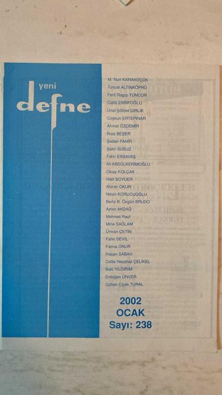 YENİ DEFNE KÜLTÜR, SANAT, ŞİİR VE EDEBİYAT DERGİSİ - OCAK 2002 SAYI: 238 M. NURİ KARAKÜÇÜK – TUNCEL ALTINKÖPRÜ – FERİT RAGIP TUNCOR – CAHİT ZARİFOĞLU – ÜNAL ŞÖHRET DİRLİK – COŞKUN ERTEPINAR – AHMET ÖZDEMİR – RIZA BEŞER – ŞADAN FAHİR – ŞAKİR SUSUZ – FAHRİ ERSAVAŞ – ALİ ABDÜLKERİMOĞLU – OLCAY KOLÇAK – HALİL SOYUER – AHMET OKUR – NEVİN KORUCUOĞLU – BERTA B. ÖZGÜN – AYTEN AKDAĞ – MEHMET RAUF – MİNE SAĞLAM – ÜMRAN ÇETİN – FAHRİ SEVİL – FATMA ONUR – HASAN SABAH – CELİLE NEZAHAT ÇELİKEL – BAKİ YILDIRIM – ERDOĞAN ÜNVER – GÜLTEN ÇİÇEK TURAL RUHÎ-İ BAĞDADÎ – BEKLEYİŞ – KARBAYAZDIR TÜRKÜLERİMİZ - TAM TAKIM EKSİKSİZ 34 SAYFA, MESUH KOTİL tarafından kaleme alınmıştır. Eser FERİT RAGIP TUNCOR editörlüğünde hazırlanmıştır. YENİ DEFNE KÜLTÜR, SANAT, ŞİİR VE EDEBİYAT DERGİSİ - OCAK 2002 SAYI: 238 M. NURİ KARAKÜÇÜK – TUNCEL ALTINKÖPRÜ – FERİT RAGIP TUNCOR – CAHİT ZARİFOĞLU – ÜNAL ŞÖHRET DİRLİK – COŞKUN ERTEPINAR – AHMET ÖZDEMİR – RIZA BEŞER – ŞADAN FAHİR – ŞAKİR SUSUZ – FAHRİ ERSAVAŞ – ALİ ABDÜLKERİMOĞLU – OLCAY KOLÇAK – HALİL SOYUER – AHMET OKUR – NEVİN KORUCUOĞLU – BERTA B. ÖZGÜN – AYTEN AKDAĞ – MEHMET RAUF – MİNE SAĞLAM – ÜMRAN ÇETİN – FAHRİ SEVİL – FATMA ONUR – HASAN SABAH – CELİLE NEZAHAT ÇELİKEL – BAKİ YILDIRIM – ERDOĞAN ÜNVER – GÜLTEN ÇİÇEK TURAL RUHÎ-İ BAĞDADÎ – BEKLEYİŞ – KARBAYAZDIR TÜRKÜLERİMİZ - TAM TAKIM EKSİKSİZ 34 SAYFA adlı eser Türkçe dilindedir.