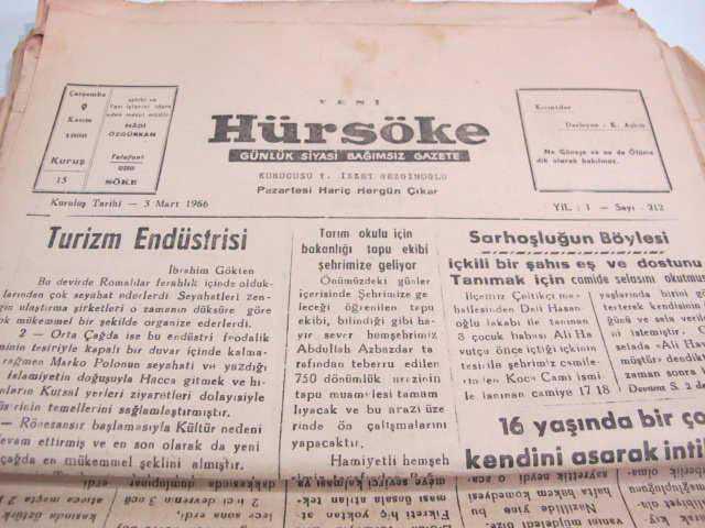 YENİ HÜRSÖKE HADİ ÖZGÜRKAN 9 KASIM 1966 başlıklı ürün, Efemera, Müzik, Sinema > Belge ve Evraklar > Gazete kategorisi altında İkinci El olarak satılmaktadır.
