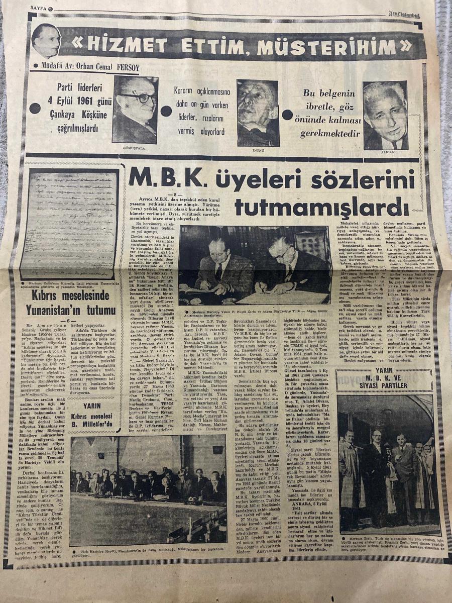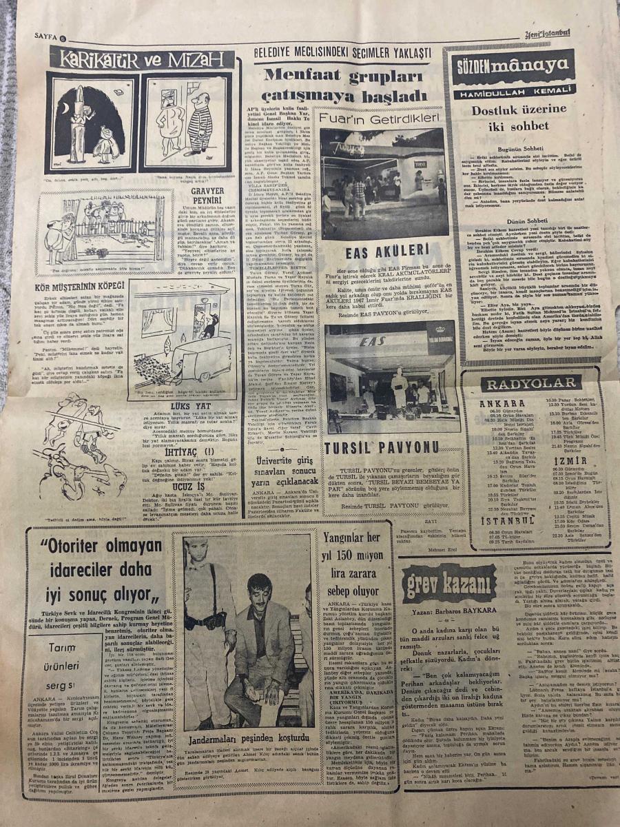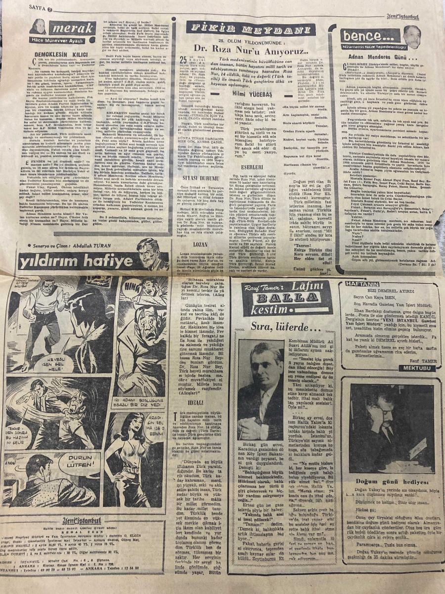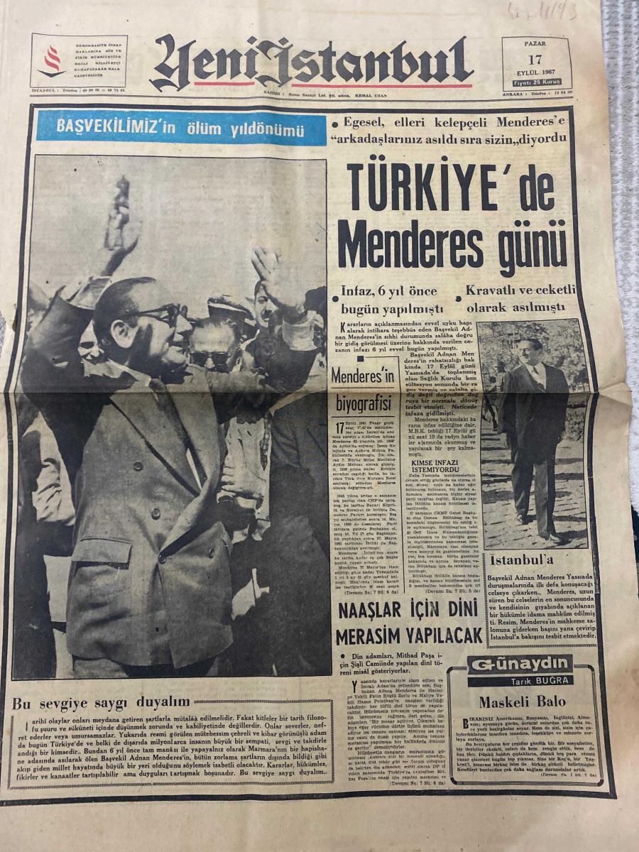 YENİ İSTANBUL GAZETESİ - DOĞUM GÜNÜ HEDİYESİ (TURKISH NEWSPAPPER) - 17 EYLÜL 1967 - SADECE DÖRT SAYFADIR -Kemal Uzan-Hâce Münevver Ayaslı-Abdullah Turan-Dr. Rıza Nur-Hilmi Yücebaş-Tarık Buğra-Orhan Cemal Fersoy-Gümüşpala-İnönü-Alican-Barbaros Baykara-Hamidullah Kemali-Mehmet Erol-Adnan Menderes-İsmet İnönü-BAŞVEKİLİMİZ’in ölüm yıldönümü-TÜRKİYE’de Menderes günü-İnfaz 6 yıl önce bugün yapılmıştı-Kravatlı ve ceketli olarak asılmıştı-Menderes’in biyografisi-Naşlar için dini merasim yapılacak-İstanbul’a-Bu sevgiye saygı duyalım-Demoklesin kılıcı-Azerbaycan Türklerinin göz yaşları-25 ölüm yıldönümünde Dr. Rıza Nur’u anıyoruz-Siyasi durumu-Lozan-Eserleri-İdeal-Adnan Menderes günü-Maskeli Balo-Hizmet ettim müşterihim-M.B.K. üyeleri sözlerini tutmamışlardı-Kıbrıs meselesinde Yunanistan’ın tutumu-Yarın Kıbrıs meselesi B. Milletlerde-Yarın M.B.K ve siyasi partiler-Karikatür ve Mizah-Kör müşterinin köpeği-Lüks yat-İhtiyaç-Otoriter olmayan idareciler daha iyi sonuç alıyor-Tarım ürünleri sergisi-Ja adlı eser Türkçe dilindedir.