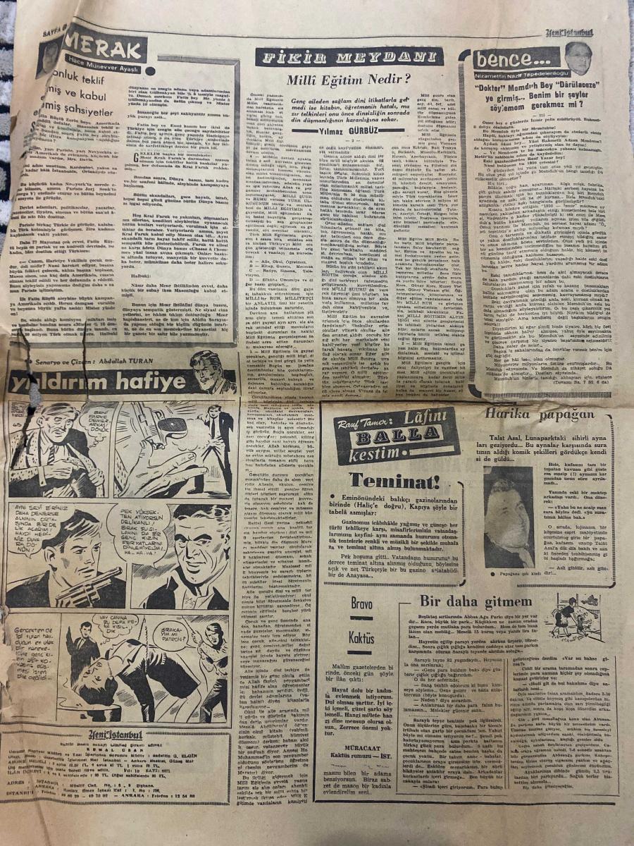 YENİ İSTANBUL GAZETESİ - DOĞUM GÜNÜ HEDİYESİ (TURKISH NEWSPAPPER) - 24 EKİM 1967 - SADECE DÖRT SAYFADIR -Ahmet Emin Yalman-Fahrettin Kerim Gökay-Nadir Nadi-Zühtü Velibeşe-Fark Komili-Kenan Kuyucak-Mustafa Santur-Ahmet Emin Yalman-Muhlis Tuzlacı-Suat Arpad-Salomon Bicarano-Tulu Baytin-Yıldırım Kılıç-Baha Kösebay-Güngör Tezel-Nazım Düvenci-Orhan Tamiç-Mustafa Onur-Kerkük’te hadiseler-Yerli meşrubata yeni bir darbe daha indirildi-Maaşlara ayrılan yeri CHP’liler vermemek istiyor-Bir eşek fezada tur atacak-Prusyalı 120 genç Ege’de tatil yapıyor-Masonluk çarkı dönüyor-Büyük Frederik ve Masonluk-Atatürk Masonluğu boşuna önlemedi-Bir belediye seçimi AP kazandı-Günaydın Ortaparmak-Milli Eğitim Nedir-Yıldırım hafiye-Teminat-Bravo Kaktüs-Bir daha gitmem-Harika papağan-Allah memleketi korusun-Aleyhime açılan dava beraatle son buldu-Zorlu’nun savunması İngiltere’ye statükonun muhafazasını teklif ettik-Yarın konferans ve getirdikleri-Masonluk Türkiye’ye ve 3 Mustafa devrinde girmişti-Masonların list adlı eser, Kitap > Süreli Yayınlar > Gazeteler > Türkiye > Genel > Günlük kategorisinde İkinci El olarak satıştadır.
