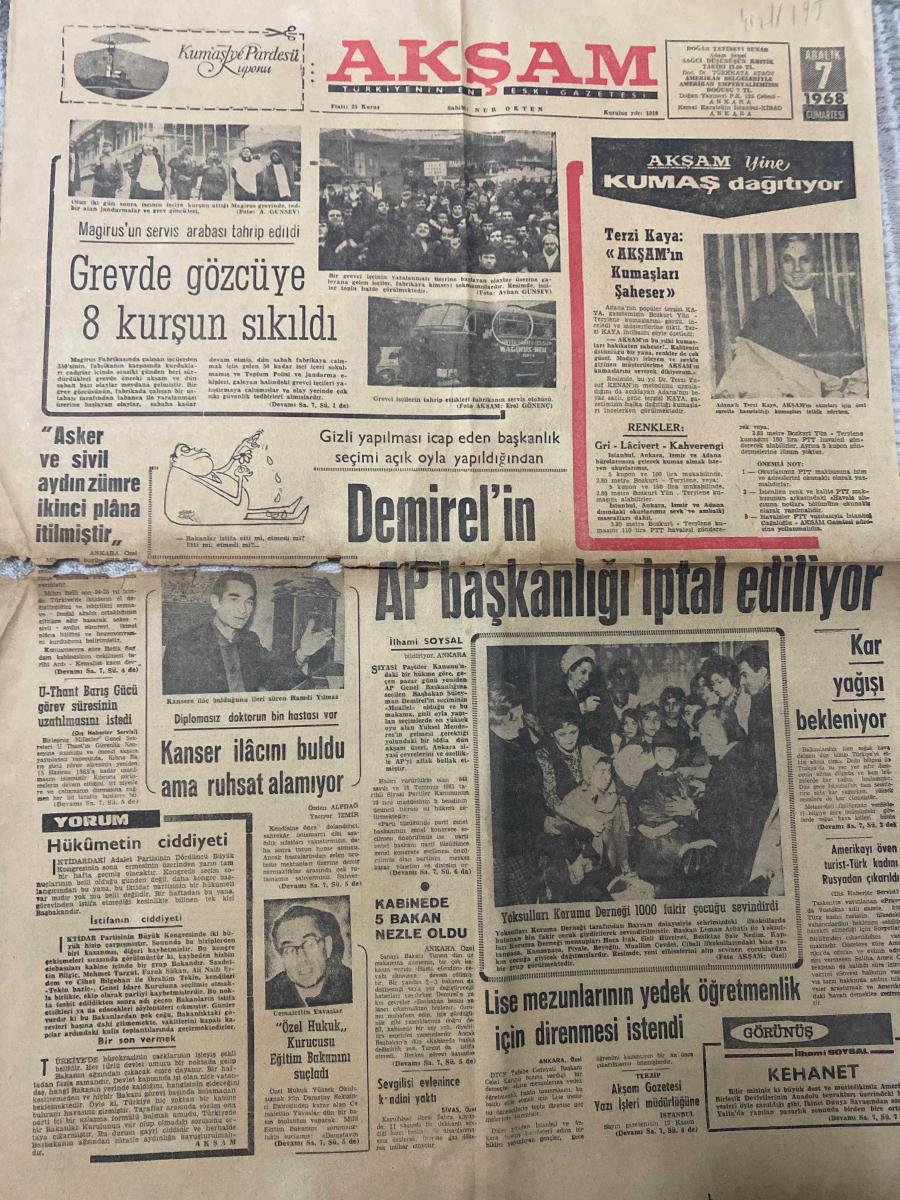 YENİ İSTANBUL GAZETESİ - DOĞUM GÜNÜ HEDİYESİ (TURKISH NEWSPAPPER) - 7 ARALIK 1968 - SADECE İKİ SAYFADIR -Nur Ökten-İlhanı Soysal-U Thant-Hamdi Yılmaz-Cemalettin Yavaşlar-Osman Köksal-Çetin Altan-Ömer Göksu-Abdullah Turhan-Mehmet Erol-Grevde gözcüye 8 kurşun sıkıldı-Asker ve sivil aydın zümre ikinci plâna itilmiştir-Gizli yapılması icap eden başkanlık seçimi açık oyla yapıldığından-Demirel’in AP başkanlığı iptal ediliyor-Kanser ilâcını buldu ama ruhsat alamıyor-Hükümetin ciddiyeti-Kabinede 5 bakan nezle oldu-Lise mezunlarının yedek öğretmenlik için direnmeleri istendi-Kar yağışı bekleniyor-Düşünceye saygı Toprak-Sosyal ve ekonomik istiraplar sosyal ve siyasi huzursuzlukların patlamaların başlıca kaynağıdır-Şeytanın gör dediği-Bir madde ki önemlidir-Portreler-Santaj biter-Zamanın önemi-En kötü olan-Toprak-Bir fırsat daha yaratılmıştır-Taş-Mevlid-i Şerif-Kitap severlere müjde-Kerayit güzeli-İstanbul Asliye Mahkemeleri üçüncü ticaret dairesi-İzmir Belediye Başkanlığından-Nesriyat Anonim Şi adlı eser Türkçe dilindedir.
