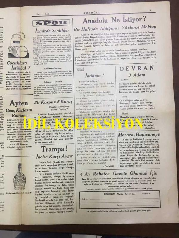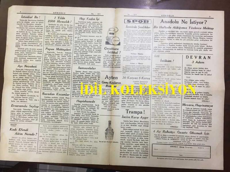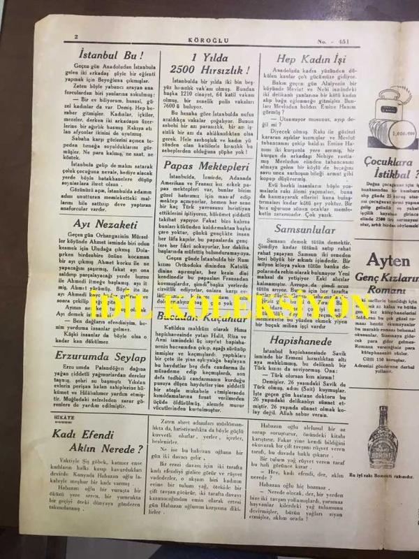 YENİ KÖROĞLU GAZETESİ - 20 AĞUSTOS 1932 - SAYI: 451 - ALMANYA İNTİKAM DİYE BAĞIRIYOR! - YOL MU, ŞİMENDİFER Mİ? - GÜZELLİK MÜSABAKASI İPTAL EDİLDİ - ÇOCUK BABALARI, MEKTEPLİLER - İSTANBUL BU! - AYI NEZAKETİ - ERZURUM'DA SEYLAP - KADI EFENDİ AKLIN NEREDE? - 1 YILDA 2500 HIRSIZLIK - PAPAS MEKTEPLERİ - BACADAN KAÇANLAR - HEP KADIN İŞİ - SAMSUNLULAR - HAPİSHANEDE - HACCACI ZALİM - HACCAÇ ARAPLARIN KAFASINI KESTİRDİ, DİRİ DİRİ DERİSİNİ YÜZDÜRDÜ - HACCACIN NUTKU - İPEKİŞ YERLİ MALLARI SERGİSİ BURSA - ESNAF ve EHALİ BANKASI MEMURLARI FOTOĞRAFI - HALİÇ İLERİSPOR TAKIMI FOTOĞRAFI adlı eser, Kitap > Süreli Yayınlar > Gazeteler > Türkiye kategorisinde İkinci El olarak satıştadır.