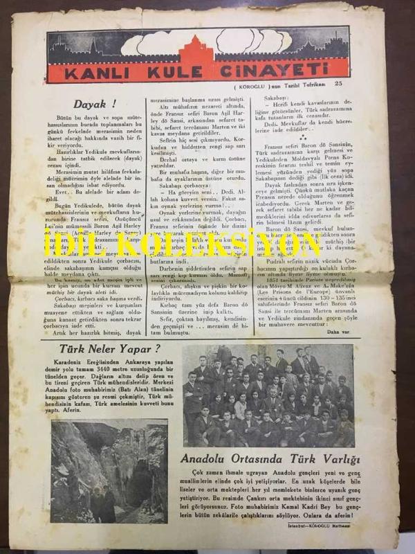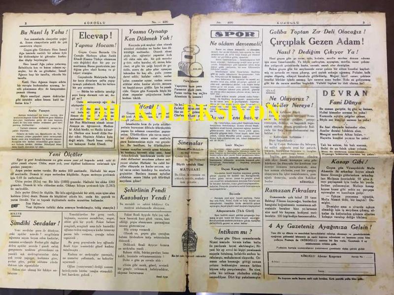YENİ KÖROĞLU GAZETESİ - 21 ARALIK (KANUNUEVVEL) 1932 - SAYI: 486 - SIRP-İTALYAN POLİTİKASI DAVUL DERİSİ GİBİ GERİLDİ - GÜMÜŞ CUMHURİYET LİRALARI BASILIYOR - HÜLAĞU ARAP HALİFEYİ HAMAMDAN NASIL ÇIKARDI? HİKAYE, ŞİMDİKİ SEVDALAR - YOSMA OYNAYIP KAN DÖKMEK YOK! - ÜFÜRÜK! - ŞEHİRLİNİN FENDİ KASABAYI YENDİ! - SİNEMALAR, ELHAMRA, MELEK, GRETA GARBO, RAMON NAVARRO, BÜYÜK CASUSLUK FİLMİ MATAHARİ - BOMONTİ RAKI - DAYAN FENERBAHÇE! - ÇIRILPILKA GEZEN ADAM! - RAMAZAN FIKRALARI - KANLI KULE CİNAYETİ, DAYAK! - TÜRK NELER YAPAR? - ANADOLU ORTASINDA TÜRK VARLIĞI - ÇANKIRI ORTA MEKTEBİ İKİNCİ SINIF GENÇLERİ FOTOĞRAFI adlı eser, Kitap > Süreli Yayınlar > Gazeteler > Türkiye kategorisinde İkinci El olarak satıştadır.