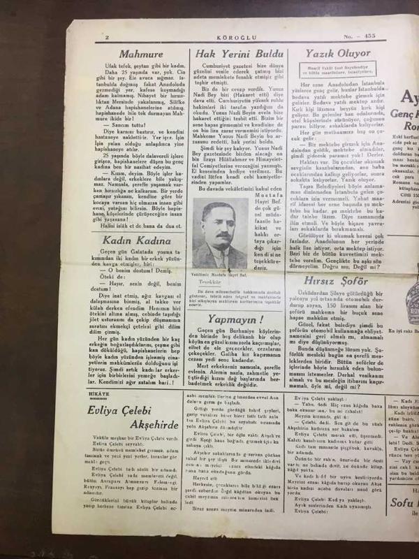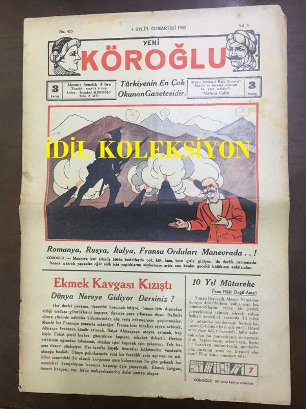 YENİ KÖROĞLU GAZETESİ - 3 EYLÜL 1932 - SAYI: 455 - EKMEK KAVGASI KIZIŞTI, DÜNYA NEREYE GİDİYOR DERSİNİZ? - 10 YIL MÜTAKERE - ROMANYA, RUSYA, İTALYA, FRANSA ORDULARI MANEVRADA - MAHMURE - KADIN KADINA - EVLİYA ÇELEBİ AKŞEHİR'DE - MUSTAFA HAYRİ BEY FOTOĞRAFI - HIRSIZ ŞOFÖR - AYTEN, GENÇ KIZLARIN ROMANI - BOMONTİ RAKI - PEYNİR EKMEKLE İDMAN OLMAZ - DUL, YETİM MAAŞI - PENDİK'TE ET 30 KURUŞ İSTANBUL'DA 90 KURUŞ - 2 YERE 340 KİŞİ - HACCACI ZALİM, ARAP TARİHİNDEN BİR PARÇA, ARAPLAR DİN GAYRETİYLE DEĞİL, ÇAPUL KEYFİLE SALDIRIYORLARDI. FAKAT TÜRKE DİŞ GEÇİREMEDİLER - PARA MI GÖNÜL MÜ? - KEMALETTİN ŞÜKRÜ - ÇOCUKLARA İSTİKBAL - MERSİN HAPİSHANESİ 1932 FOTOĞRAFI, HÜDAİ BEY, MUALLİM FERİDUN BEY - BERGAMA HANIMLARI 19632 FOTOĞRAFI adlı eser, Kitap > Süreli Yayınlar > Gazeteler > Türkiye kategorisinde İkinci El olarak satıştadır.
