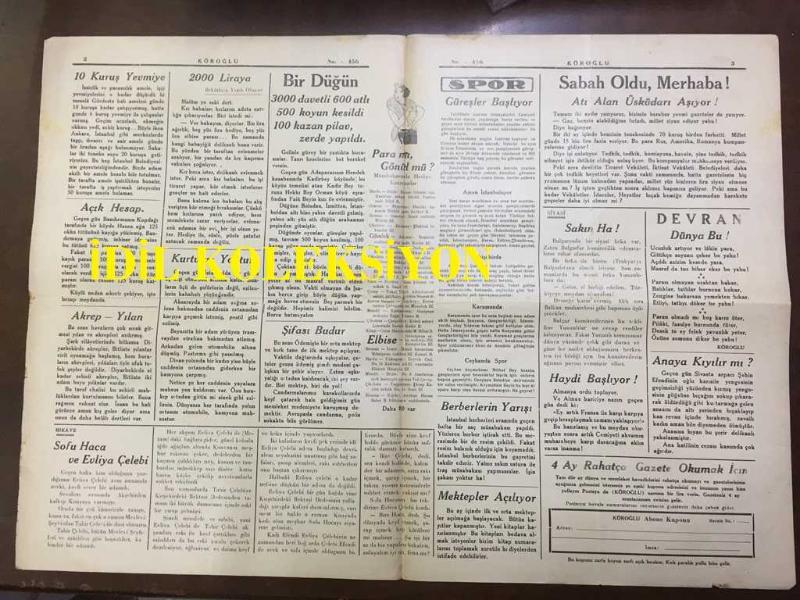 YENİ KÖROĞLU GAZETESİ - 7 EYLÜL 1932 - SAYI: 456 - AVRUPA'YI BİR EL KARIŞTIRIYOR AMA KİMİN ELİ? - HARP İSTİYORLAR - ALEM OK GİBİ GİDERKEN... - 10 KURUŞ YEVMİYE - AÇIK HESAP - AKREM-YILAN - SOFU HACA ve EVLİYA ÇELEBİ - 2000 LİRAYA BEKARLARA YAZIK OLUYOR - KURTULUŞ YOKTUR - BİR DÜĞÜN 3000 DAVETLİ 600 ATLI 500 KOYUN KESİLDİ 100 KAZAN PİLAV ZERDE YAPILDI - PARA MI GÖNÜL MÜ? - BERBERLERİN YARIŞI - MEKTEPLER AÇILIYOR - ATI ALAN ÜSKÜDAR'I AŞIYOR - ANAYA KIYILIR MI? - HACCACI ZALİM, ARAP TARİHİNDEN BİR PARÇA, BÜTÜN BASRA ve KÜFE KANA BOYANDI. KILIÇ KILICA - KEMALETTİN ŞÜKRÜ - KIBRIS ADASINDA TÜRK KIZLRI, KIBRIS KIZ LİSESİ 1932 MEZUNLARI FOTOĞRAFI, NİDAİ BEY - ÇOCUKLARA İSTİKBAL - BOKS, NURİ BEY FOTOĞRAFI adlı eser, Kitap > Süreli Yayınlar > Gazeteler > Türkiye kategorisinde İkinci El olarak satıştadır.