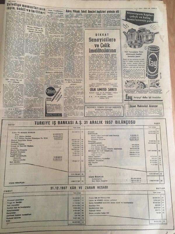 YENİ SABAH GAZETESİ 1 NİSAN 1958 YIL :20 SAYI :6853---Rusya Nüklear Denemeleri Tek Taraflı Olarak Durdurdu ---Menderes ve Yardımcı Dün Profesörlerle Görüştü ----Kıbrıs yüksek tahsil gençleri İngilizleri protesto ettiler --Amerikan yardımı 154 milyon dolardan 200 milyona çıkıyor ---Belediye memurlarının tayin nakil ve terfileri ---Ekip Halinde :Siyavuşgil ---1958 İmar Planı Tatbike Konuldu --Yeni Köy Kanunu Layihası Hazırlandı ---Fenerbahçe galip Moda şampiyon ---Beşiktaş İdare Heyeti Dün Vazife Taksimi Yaptı ---G.Milli Takımı Dün Sabah Uğurladık ---Federasyon Kupası Maçları Yarın Şehrimizde Başlıyor ----, SAFA KILIÇLIOĞLU tarafından kaleme alınmıştır. Kitap 1958 yılında [YENİ SABAH MATBAA] o ISBN kodu ile yayınlanmıştır. 6 sayfadır. YENİ SABAH GAZETESİ 1 NİSAN 1958 YIL :20 SAYI :6853---Rusya Nüklear Denemeleri Tek Taraflı Olarak Durdurdu ---Menderes ve Yardımcı Dün Profesörlerle Görüştü ----Kıbrıs yüksek tahsil gençleri İngilizleri protesto ettiler --Amerikan yardımı 154 milyon dolardan 200 milyona çıkıyor ---Belediye memurlarının tayin nakil ve terfileri ---Ekip Halinde :Siyavuşgil ---1958 İmar Planı Tatbike Konuldu --Yeni Köy Kanunu Layihası Hazırlandı ---Fenerbahçe galip Moda şampiyon ---Beşiktaş İdare Heyeti Dün Vazife Taksimi Yaptı ---G.Milli Takımı Dün Sabah Uğurladık ---Federasyon Kupası Maçları Yarın Şehrimizde Başlıyor ---- adlı eser Türkçe dilindedir.