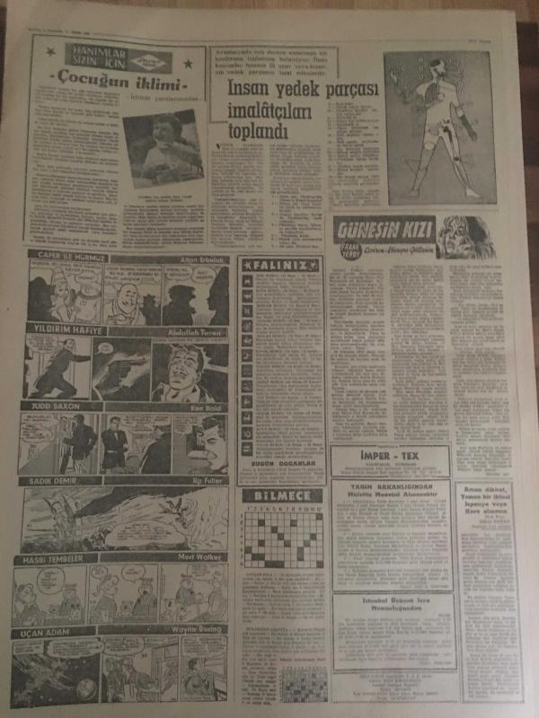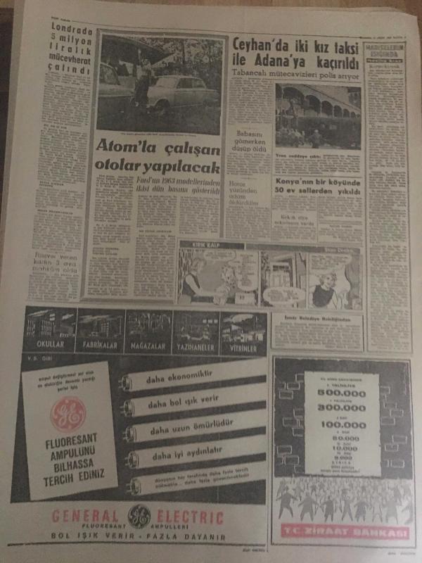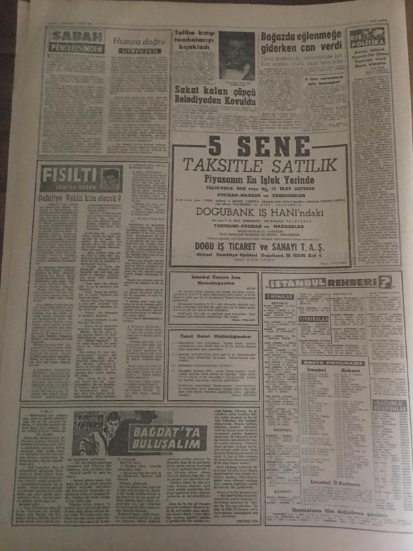 YENİ SABAH GAZETESİ 11 EKİM 1962 YIL :25 SAYI :8470---Af kanunu çıkardıktan sonra Meclis tatile girecek ---Af Tasarısını Adalet Komisyonu Dün Kabul Etti ---Trafik cezaları yüzde 200 artmalı --C.Gürsel İnönü ile Görüştü --Ecnebi fillerinin düblajı yasak edildi --CHP ve AP milleti birliğe çağırıyor---Huzura Doğru :Siyavuşgil ---Boğazda eğlenmeye giderken can verdi --Ceyhan da iki kız taksi Adana 'ya kaçırıldı ---Atomla çalışan otolar yapılacak --Habeşistan 'ı 3-0 yendik --Sürpriz :İzmir spor B.Beyi ile dün 1-1 berabere kaldı ---İstanbul hakemleri boykottan vazgeçiyor --Kokotoviç futbolda bir reform yapıyor --, SAFA KILIÇLIOĞLU: tarafından kaleme alınmıştır. Kitap 1962 yılında [YENİ SABAH MATBAA] o ISBN kodu ile yayınlanmıştır. 6 sayfadır. YENİ SABAH GAZETESİ 11 EKİM 1962 YIL :25 SAYI :8470---Af kanunu çıkardıktan sonra Meclis tatile girecek ---Af Tasarısını Adalet Komisyonu Dün Kabul Etti ---Trafik cezaları yüzde 200 artmalı --C.Gürsel İnönü ile Görüştü --Ecnebi fillerinin düblajı yasak edildi --CHP ve AP milleti birliğe çağırıyor---Huzura Doğru :Siyavuşgil ---Boğazda eğlenmeye giderken can verdi --Ceyhan da iki kız taksi Adana 'ya kaçırıldı ---Atomla çalışan otolar yapılacak --Habeşistan 'ı 3-0 yendik --Sürpriz :İzmir spor B.Beyi ile dün 1-1 berabere kaldı ---İstanbul hakemleri boykottan vazgeçiyor --Kokotoviç futbolda bir reform yapıyor -- adlı eser Türkçe dilindedir.