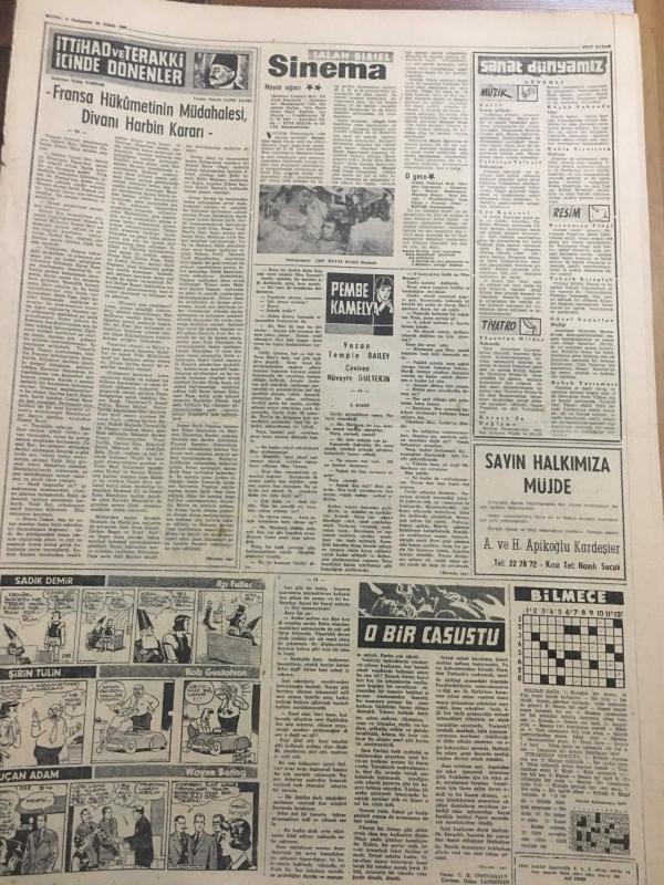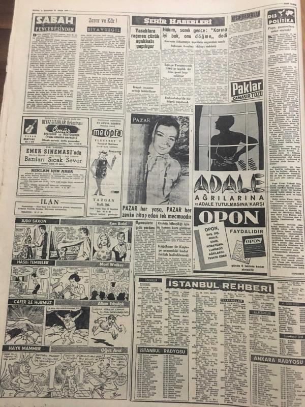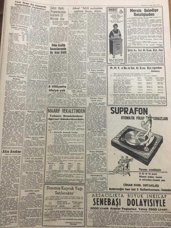 YENİ SABAH GAZETESİ 12 ARALIK 1959 YIL :22 SAYI : 7463---Kabine de değişiklik ---Türk lirası ,dış piyasada kıymetinden kaybediyor ---Aksal Milli muhalefet cephesi lazım diyor ---Şehir Tiyatrolarında aylıklar artırılıyor --1960 Yılında büyük istimlak hareketlerine girişilmeyecek ---Amerika Kurmay Başkanı De Gaulle ü İtham Etti ---Zarar ve kar : Siyavuşgil ---Sinemalar ,Tiyatrolar ,Radyo Programları ---Otomobil getirtme müddeti sona eriyor ---B.Almanya da 49 kızıl tevkif edildi ---Sinema : Hayat Ağacı, O Gece ---Galatasaray ,İzmir de son şansını deniyor ---Fenerbahçe için en büyük tehlike : İsviçre li hakemler ---Güre Galatasaray İdare Heyetinin İstifasını 3 Noktada Topluyor --Molnar ,Fenerbahçe gece antrenman yaptırmak istiyor ---B.Milli Takımı 26 Aralıkta Açıklanak ---Voleybol Avrupa Kupasına Katılıyoruz ---P. Nehru Amerika dan askeri yardım istemiyor --- adlı eser, Kitap > Süreli Yayınlar > Gazeteler > Türkiye > Genel > Günlük kategorisinde İkinci El olarak satıştadır.
