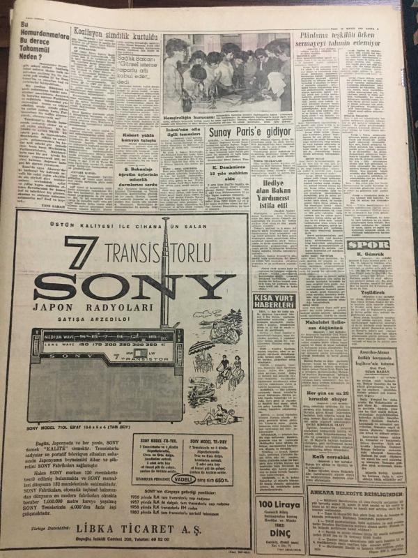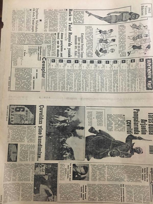 YENİ SABAH GAZETESİ 13 MAYIS 1962 YIL :25 SAYI :8322--Bikini modelleri-CHP ,AP nin cevabını beğenmedi --Gürsel ,Sunay sonra İnönü ile görüştü ---Planlama teşkilatı ürken sermayeyi tahmin edemiyor ---Kalp Cerrahisi Merkezi Açıldı --Özel teşebbüsü yanlış hareketler kasaların açılması 22 Şubat ürküttü ---Her gün en az 20 hırsızlık oluyor --Muhalefet Sofia nın düğününü boykot etti --Küçük icadlar : Siyavuşgil ---Radyo Programları ---Kocam R.Burton ve Liz Taylor --Rock ve Twist Rusya da yasak ---Dış olaylar : İspanya da gösteri yapan öğrenciler tevkif edildi ---Bengal de 13 Müslüman Öldürülmüş ---Hediye alan Bakan Yardımcısı istifa etti ---Beşiktaş ,Iz.Spor dan Güç Kurtuldu --0-0---İsrail takımı bugün geliyor --Vefa dün iddialı Altay ı 1-0 yendi ---G.Birliği ,baraj yolcusu D.Spora şans tanımadı --Y.Direk tek puanı bile güç aldı ---Karşıyaka :3 Karagümrük :2 ---İ.Spor :0-A.Gücü :0--Cavit Oral : Af meselesinde mütabakata varıldı dedi --- adlı eser, Kitap > Süreli Yayınlar > Gazeteler > Türkiye > Genel > Günlük kategorisinde İkinci El olarak satıştadır.