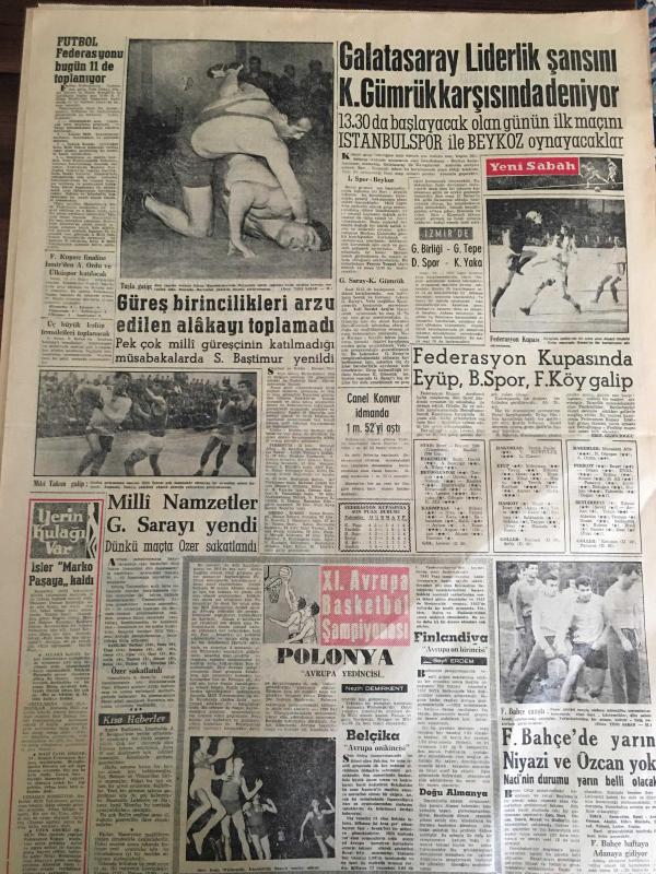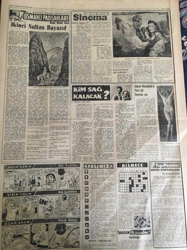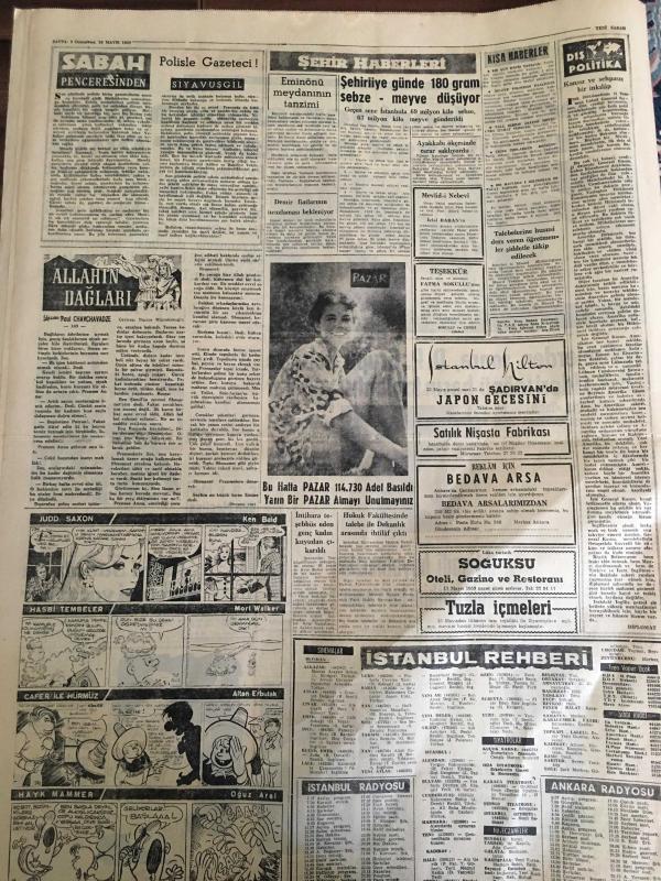 YENİ SABAH GAZETESİ 16 MAYIS 1959 YIL :22 SAYI :7256--Meclis koridorlarında dün bazı müessif hadiseler oldu ---Hadiselerden sonra ,D.D Grubu Reisi ve CHP lideri İnönü basın toplantısı yaptılar --İktisadi hayatımızla ilgili mühim bir rapor --CHP liler dün Meclise giremediler --Zabıta muhabirleri deklarasyon neşretti ---Polisle Gazeteci :Siyavuşgil --İstanbul Rehberi --Batılılar Berlin in bir seçimle birleştirilmesini teklif ettiler ---Akyazı da iki kişiyi vuran Albay da öldü --Sinema :Cinayet Dalgası ,Kadınlar Kalesi ,Kalpazanlar Mücadelesi ---Türk -Amerikan 150 yıllık dostluk sergisi dün açıldı --Galatasaray liderlik şansını K.Gümrük karşısında deniyor ---Güreş birincilikleri arzu edilen alakayı toplamadı --Federasyon Kupasında Eyüp ,B.Spor ,F.Köy Galip ---Milli Namzetler Galatasaray yendi ---Fenerbahçe de yarın Niyazi ve Ozcan yok -- adlı eser, Kitap > Süreli Yayınlar > Gazeteler > Türkiye > Genel > Günlük kategorisinde İkinci El olarak satıştadır.