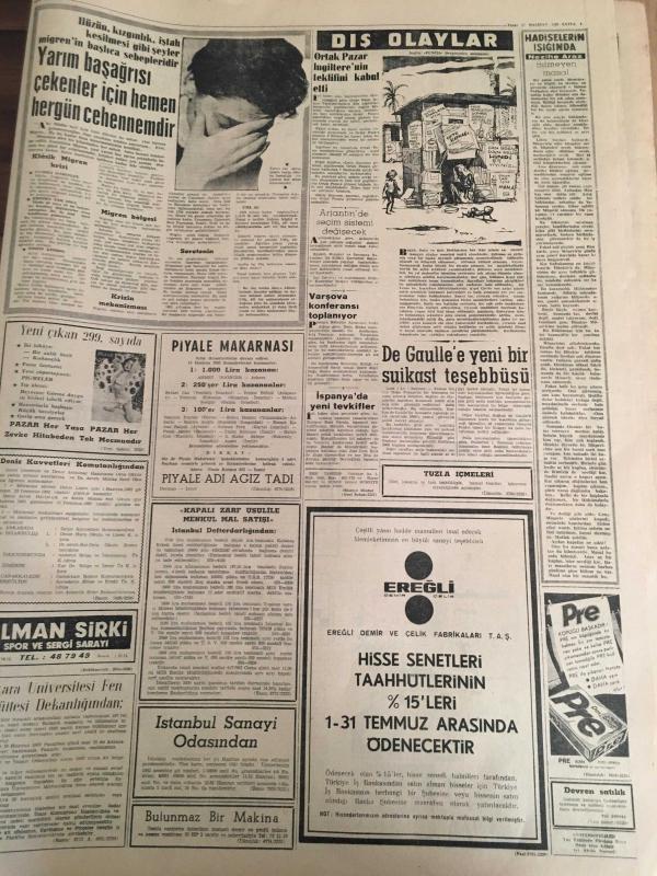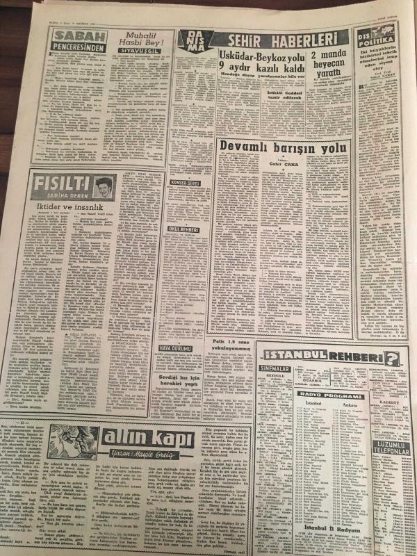 YENİ SABAH GAZETESİ 17 HAZİRAN 1962 YIL :25 SAYI :8354--Koalisyon liderleri dün toplandı --CKMP Milli Koalisyonu Tercih Ediyor --Mevsim işsizliği had safhaya vardı --Tekel işçileri mezarlıkta bir basın toplantısı yaptı --Sahte dekontlarla para çeken yakalandı --İlk kademe af 29 Ekimde çıkıyor --Muhalif Hasbi Bey :Siyavuşgil --Sinemalar :Marsist ,Emek :Gizli Münasebetler ,İnci Satın Alınan Adam ,Konak :Aşk Oyunları ,Saray :Kahraman Kardeşler --De Gaulle 'e yeni bir suikast teşebbüsü --Sovyet gizli casus okulunda öğrenim müddeti on iki sene ---Vefa Baraj 'a Düştü --Galatasaray Şampiyon --Güreş kafilesi bu akşam gidiyor ----Napoli Can 'ı almak istiyor -- adlı eser, Kitap > Süreli Yayınlar > Gazeteler > Türkiye > Genel > Günlük kategorisinde İkinci El olarak satıştadır.