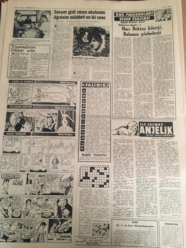 YENİ SABAH GAZETESİ 17 HAZİRAN 1962 YIL :25 SAYI :8354--Koalisyon liderleri dün toplandı --CKMP Milli Koalisyonu Tercih Ediyor --Mevsim işsizliği had safhaya vardı --Tekel işçileri mezarlıkta bir basın toplantısı yaptı --Sahte dekontlarla para çeken yakalandı --İlk kademe af 29 Ekimde çıkıyor --Muhalif Hasbi Bey :Siyavuşgil --Sinemalar :Marsist ,Emek :Gizli Münasebetler ,İnci Satın Alınan Adam ,Konak :Aşk Oyunları ,Saray :Kahraman Kardeşler --De Gaulle 'e yeni bir suikast teşebbüsü --Sovyet gizli casus okulunda öğrenim müddeti on iki sene ---Vefa Baraj 'a Düştü --Galatasaray Şampiyon --Güreş kafilesi bu akşam gidiyor ----Napoli Can 'ı almak istiyor --, SAFA KILIÇLIOĞLU: tarafından kaleme alınmıştır. Kitap 1962 yılında [YENİ SABAH MATBAA] o ISBN kodu ile yayınlanmıştır. 8 sayfadır. YENİ SABAH GAZETESİ 17 HAZİRAN 1962 YIL :25 SAYI :8354--Koalisyon liderleri dün toplandı --CKMP Milli Koalisyonu Tercih Ediyor --Mevsim işsizliği had safhaya vardı --Tekel işçileri mezarlıkta bir basın toplantısı yaptı --Sahte dekontlarla para çeken yakalandı --İlk kademe af 29 Ekimde çıkıyor --Muhalif Hasbi Bey :Siyavuşgil --Sinemalar :Marsist ,Emek :Gizli Münasebetler ,İnci Satın Alınan Adam ,Konak :Aşk Oyunları ,Saray :Kahraman Kardeşler --De Gaulle 'e yeni bir suikast teşebbüsü --Sovyet gizli casus okulunda öğrenim müddeti on iki sene ---Vefa Baraj 'a Düştü --Galatasaray Şampiyon --Güreş kafilesi bu akşam gidiyor ----Napoli Can 'ı almak istiyor -- adlı eser Türkçe dilindedir.