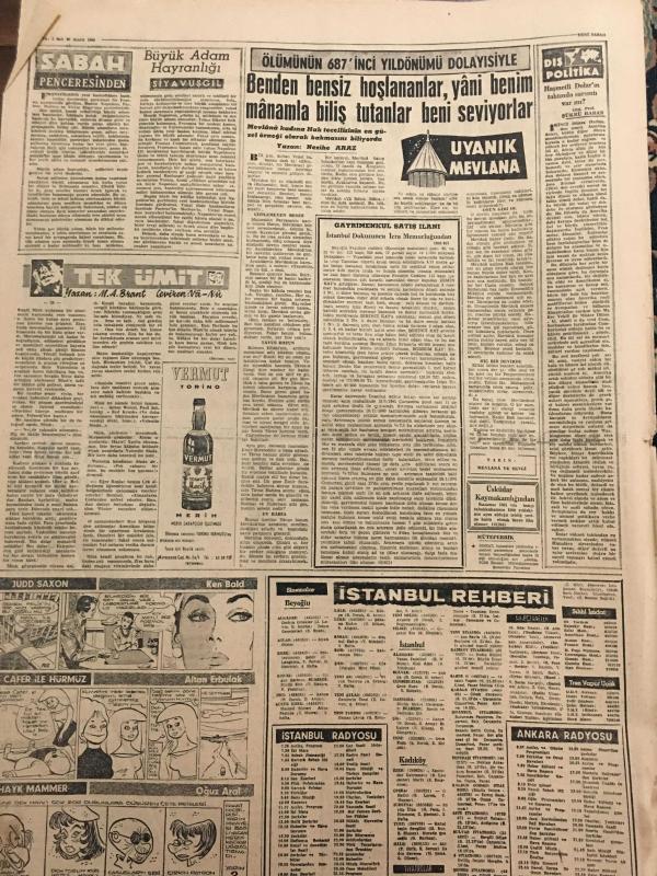 YENİ SABAH GAZETESİ 20 ARALIK 1960 YIL :23 SAYI :7823--Tankerde yeni infilaklar oldu --Danıştay da dört temsilcisini seçti ---Bilecik Valisi Hakkında Tahkikat --Artus 3 mühim tasarı hakkında izahat verdi --Menderes in avukatı İnönü yü itham etti ---Öğrenci Bankası Tasarısı MBK da --İnkılap emeklileri Ankara ya gidiyor --Büyük adam hayranlığı :Siyavuşgil --İstanbul Rehberi ---Milli Eğitim Planlama Kurulu Teşkil Ediliyor --İzmit de sabıklara ait 4 dava görüldü --Haile Selasiye tekrar Habeşistan a hakim oldu ---Havada çarpışan iki uçak New-York u birbirine kattı --Fenerbahçe U.Kaptanı Niyazi sel dün istifa etti ---Garbis Jo N gan bu gece karşılaşıyor ---Galatasaraylılar dün kurban kestiler ---Balkan Olimpiyatları 1962 de İhya Ediliyor ---Ankara da ki sinemalara yüzde 50 zam --- adlı eser, Kitap > Süreli Yayınlar > Gazeteler > Türkiye > Genel > Günlük kategorisinde İkinci El olarak satıştadır.
