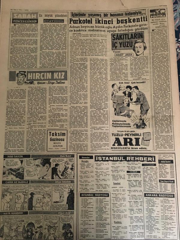 YENİ SABAH GAZETESİ 21 EKİM 1960 YIL :23 SAYI :7763---Bayarla Ökmen müdafaalarını yaptılar : Duruşma karar için pazartesiye bırakıldı --Amerikan 6. filosu Ege de büyük bir tatbikat yaptı --Anayasa Mahkemesi Kararlarını Kesin Olacak ---Gebze civarında iki keşif uçağı çarpıştı ---Vali Refik Tulga 2000 lise öğrencisi ile dün sohbet toplantısı yaptı ---En büyük günahları :Siyavuşgil --İstanbul Rehberi ---Mısırlılar bir İsrail uçağını düşürdüler ---Karl Hüseyin in uçağı 2 defa mecburi iniş yaptı --Üç büyükler kendi maçlarını Ankara da oynamak istiyorlar ---Fenerbahçe -A.Gücü ,Galatasaray -Altay ---Serbest güreşte jandarma birinci --Dünyanın en iyi atleti : Elliott --Milli takım kadrosunda değişiklikler yapılacak --Türkiye de fikir gazeteciliğinin 100. yıldönümü ---Bayar ın kızı N.Gürsoy un gazetecilerle arası düzeldi --Yüksek Adalet Divanının Tutumu Son Derece Adil --Bayar ve F.K Gökay ın Atina fahri hemşehrisi payeleri geri alındı ---, SAFA KILIÇLIOĞLU tarafından kaleme alınmıştır. Kitap 1960 yılında [YENİ SABAH MATBAA] o ISBN kodu ile yayınlanmıştır. 6 sayfadır. YENİ SABAH GAZETESİ 21 EKİM 1960 YIL :23 SAYI :7763---Bayarla Ökmen müdafaalarını yaptılar : Duruşma karar için pazartesiye bırakıldı --Amerikan 6. filosu Ege de büyük bir tatbikat yaptı --Anayasa Mahkemesi Kararlarını Kesin Olacak ---Gebze civarında iki keşif uçağı çarpıştı ---Vali Refik Tulga 2000 lise öğrencisi ile dün sohbet toplantısı yaptı ---En büyük günahları :Siyavuşgil --İstanbul Rehberi ---Mısırlılar bir İsrail uçağını düşürdüler ---Karl Hüseyin in uçağı 2 defa mecburi iniş yaptı --Üç büyükler kendi maçlarını Ankara da oynamak istiyorlar ---Fenerbahçe -A.Gücü ,Galatasaray -Altay ---Serbest güreşte jandarma birinci --Dünyanın en iyi atleti : Elliott --Milli takım kadrosunda değişiklikler yapılacak --Türkiye de fikir gazeteciliğinin 100. yıldönümü ---Bayar ın kızı N.Gürsoy un gazetecilerle arası düzeldi --Yüksek Adalet Divanının Tutumu Son Derece Adil --Bayar ve F.K Gökay ın Atina fahri hemşehrisi payeleri geri alındı --- adlı eser Türkçe dilindedir.