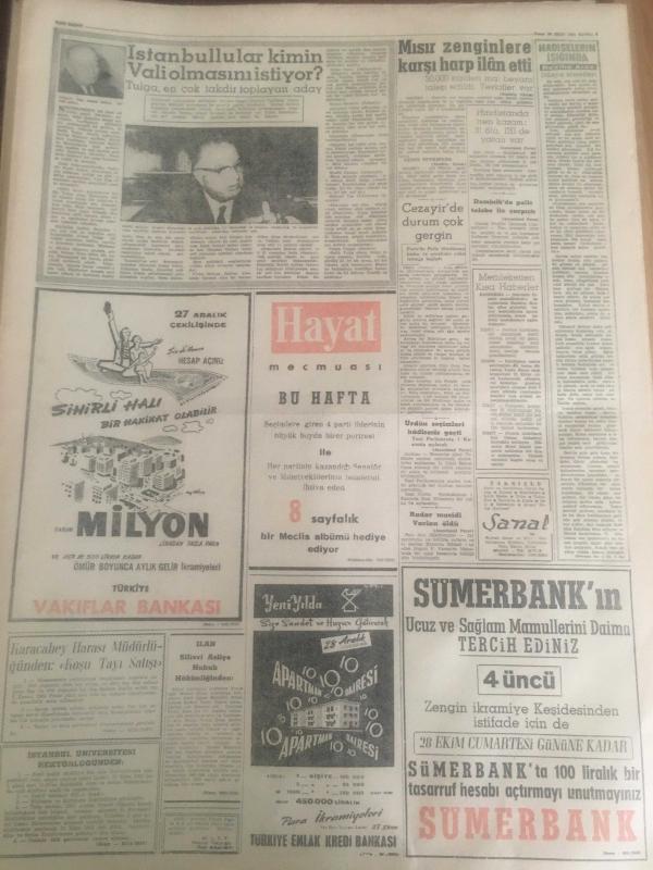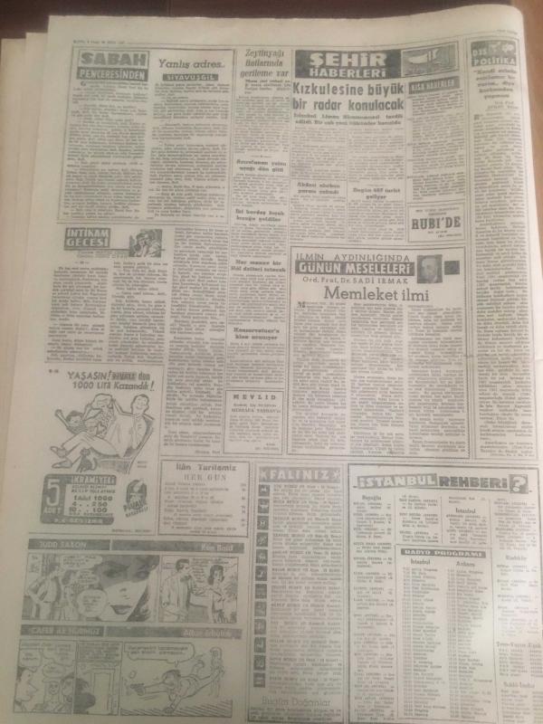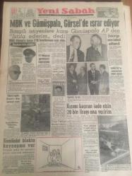 YENİ SABAH GAZETESİ 22 EKİM 1961 YIL :24 SAYI :8121---MBK ve Gümüşpala ,Gürsel de ısrar ediyor --Başgili isteyenlere karşı Gümüşpala AP den İstifa ederim dedi ---Elektriğe zam kabul edilmedi ----Öfkeli İngiliz Kruşçef e ihtar vermek istedi ---Kızımı kaçıran iade etsin 20 bin lirayı ona veririm ---Komünist blokta kaynaşma var --Şemsettin Günaltay în cenazesinde İnönü ağladı ---Yanlış adres :Siyavuşgil --Kızkulesine büyük radar konulacak ---Sinemalar ,Tiyatrolar ,Radyo Programları --İstanbullular kimin vali olmasını istiyor ?---Mısır Zenginlere Karşı Harp İlan Etti ---Serbestte Rusya 'yı 2-1 yenebildik --Galatasaray PTT 'yi ikinci devre mağlup etti: 2-0 --Norveç ve Rusya Kadrosu Açıklandı ---Altay :2 D.Spor : 2---Iz.Spor la Şekerhilal berabere kaldılar --Feriköy :1 Altınordu : 1 ---G.Birliği K.Yakayı rahat yendi :3-1--- Basketbolda İTU ve Fenerbahçe galip geldiler --- Yıpranma, sararmalar, kupon kesiği ve yırtılmalar zamana bağlı olarak görülebilir.